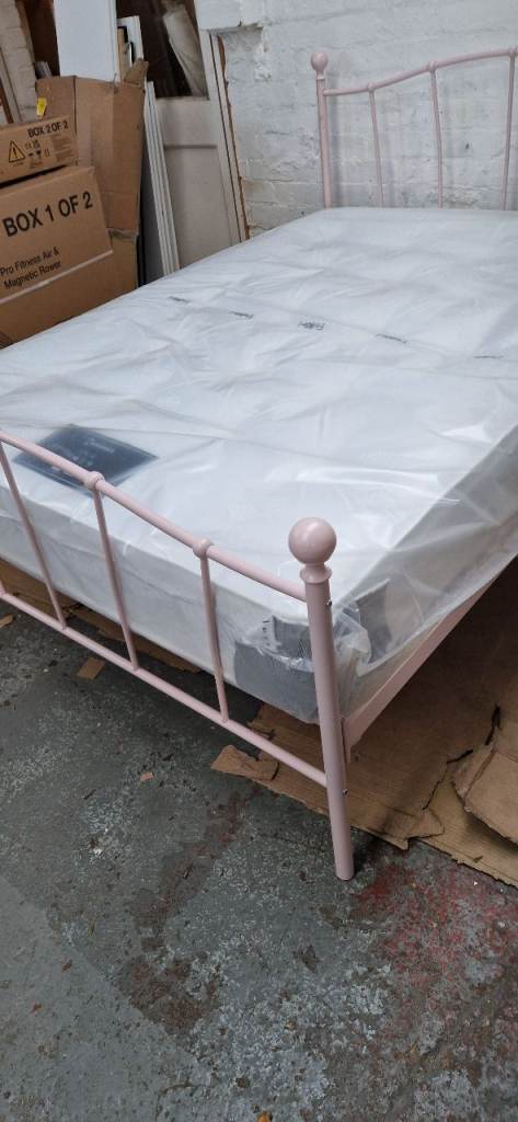 !!! Ex Display Model !!! Argos home Fleur double metal bed frame - Pink & brand new 10 inch deep spring firm orthopaedic mattress