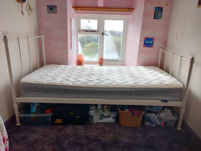 Selling a king size bed with mattress – comfortable and ready to use, ideal for a quick bedroom setup.