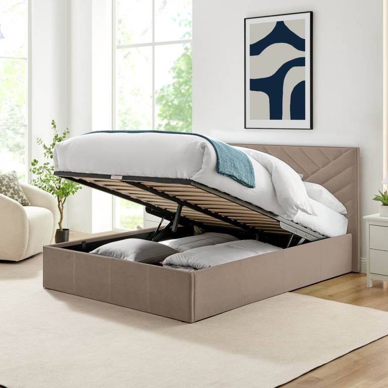 Luca Double End Lift Ottoman Bed - Latte