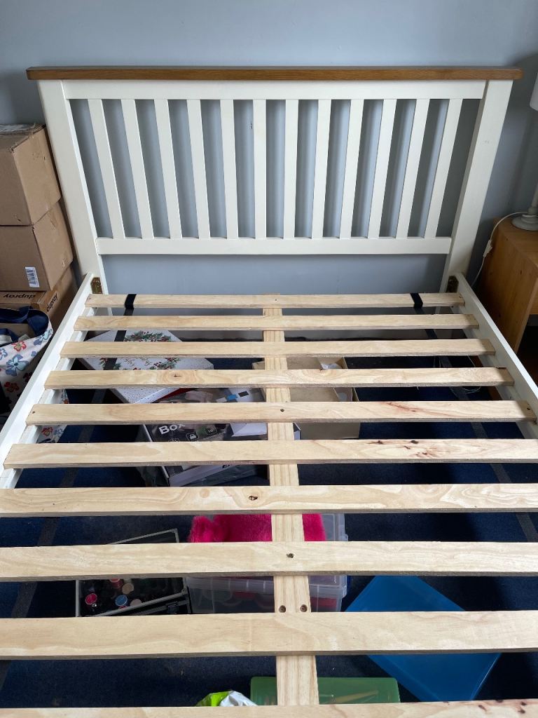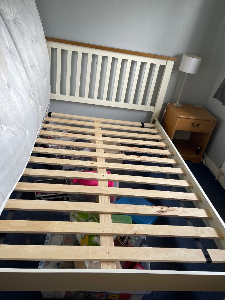 White double bed frame for sale, (6ft 4) will be dismantled before buyer collection and accessories (tools, nuts and bolts included!)