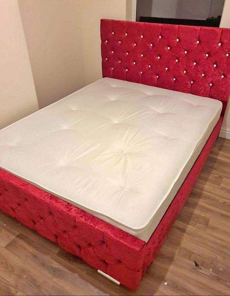 This designer bed is upholstered in Luxury Plush Velvet Fabric.