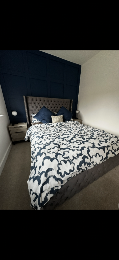 DIVAN BED || Double Divan Bed Panel line bed grey with mattress FREE DELVIERY