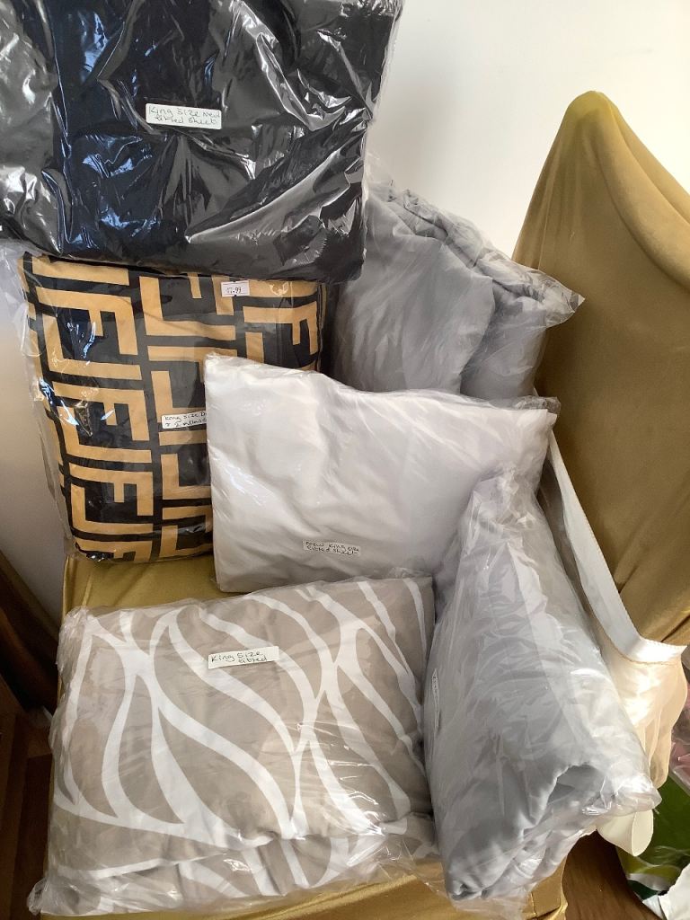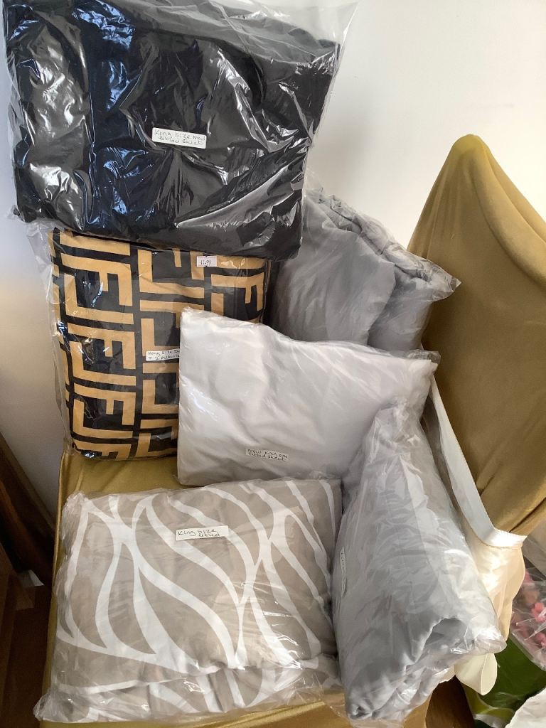 2 new king size fitted sheet & duvet cover with 2 pillow cases & 1 fitted sheet the rest used clean