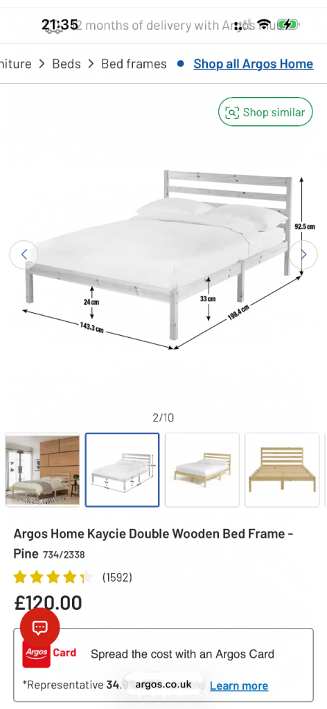 Posting for under a monthArgos home kaycie double wooden bed frame