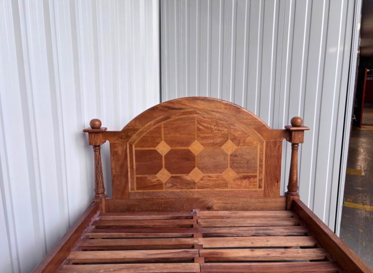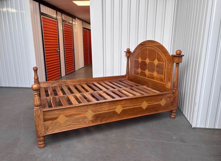 Hand made from solid hardwood with polished travertine inlays ! All sections are numbered for assembly due to being handmade !