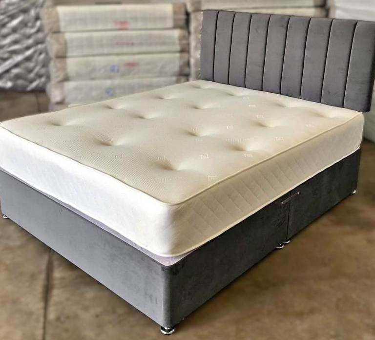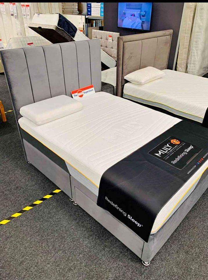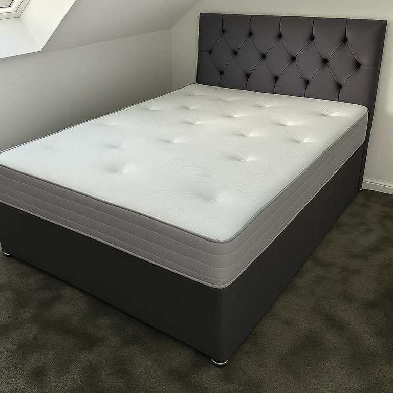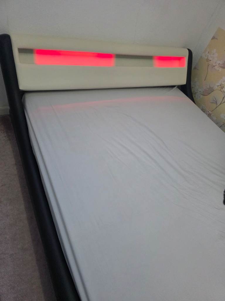 Bed frame with illuminated headboard and Memory Mattress