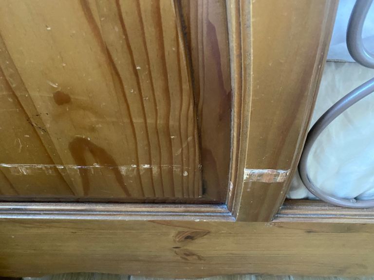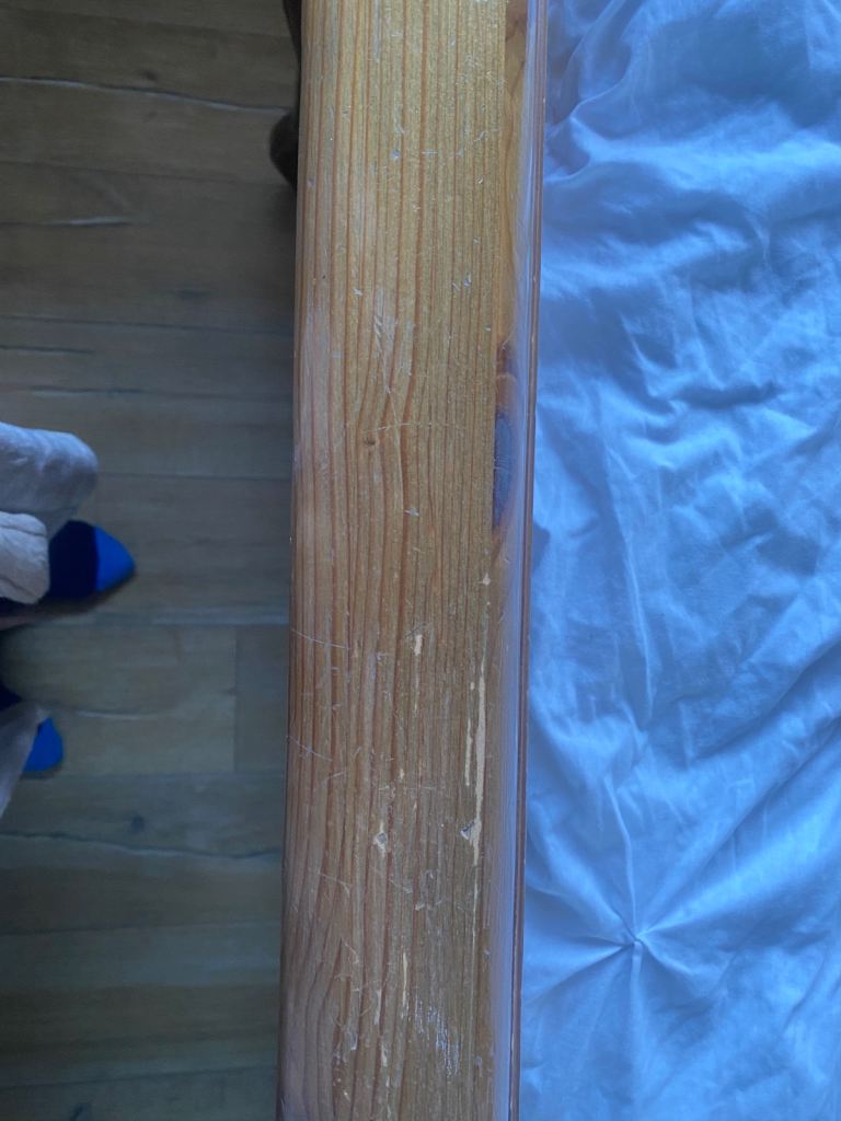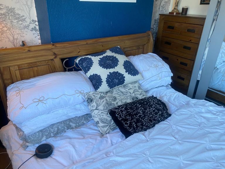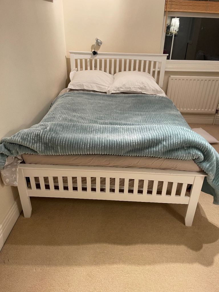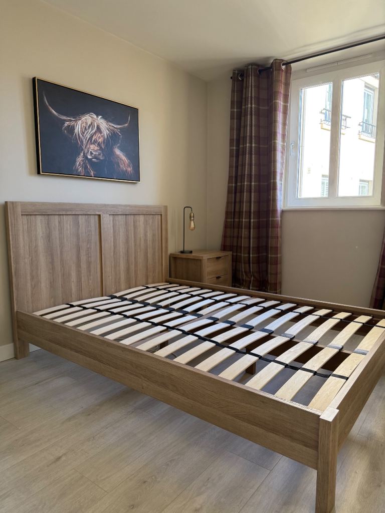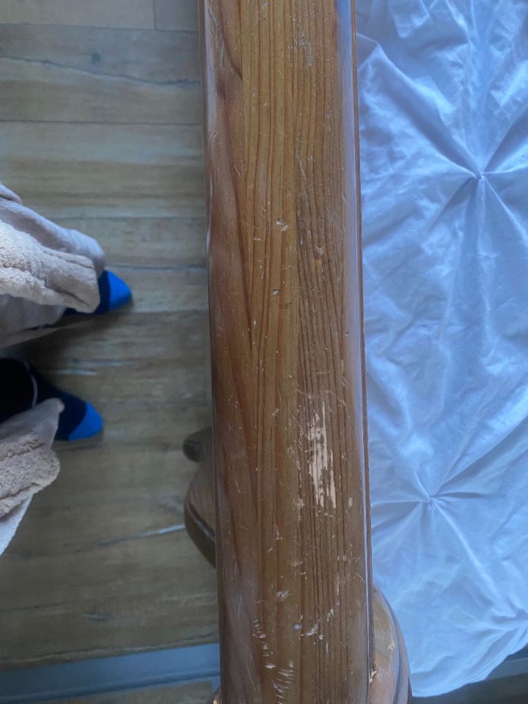 This bed is absolutely gorgeous. A star feature for your bedroom. Has slight minor marks on it thst need some wood stain , only minimum TLC required. Iv posted photos to show these snd other littke marks, but overall it adds to the old wooden look of it. This bed cannot be purchased anywhere. Stopped making them 20 years ago, so very rare to find and would cost a fortune to buy now. Was a luxury buy at the time. Will be dismantled for oick up. Bought for £865 selling for only £120. Measurements 7ft by 5ft 8ins