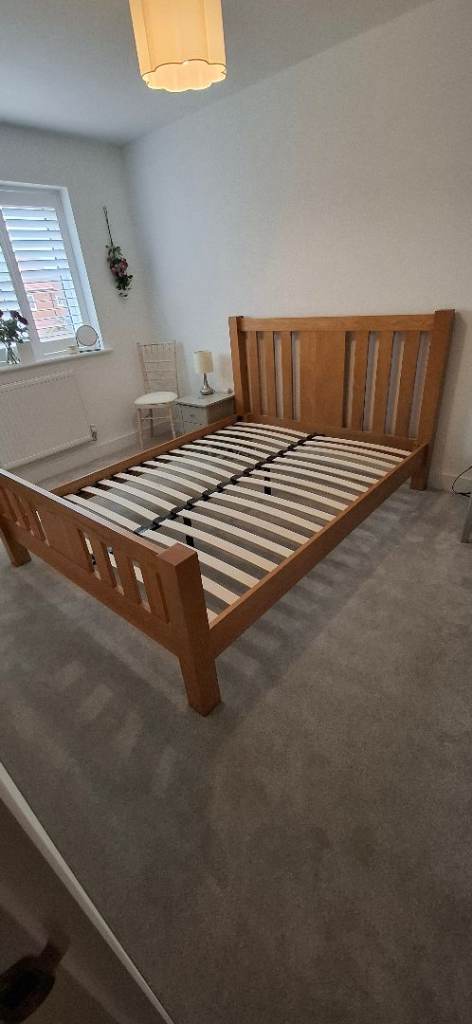 Posting for 9+ yearsBed Only - Solid Oak no mattress - £120 quick sale- Beautiful Real solid wooden king size bed.