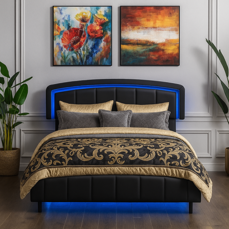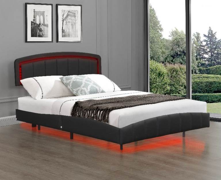The built-in LEDs come with a remote control, allowing you to effortlessly change colours, brightness, and lighting modes—including fade, flash, and smooth transitions. Perfect for adding a luxury touch to your space, whether you’re relaxing, gaming, or creating a cosy atmosphere. Crafted with a sleek black faux leather finish and a sturdy frame, this bed offers both durability and premium style. The padded headboard provides extra comfort while enhancing the modern design.