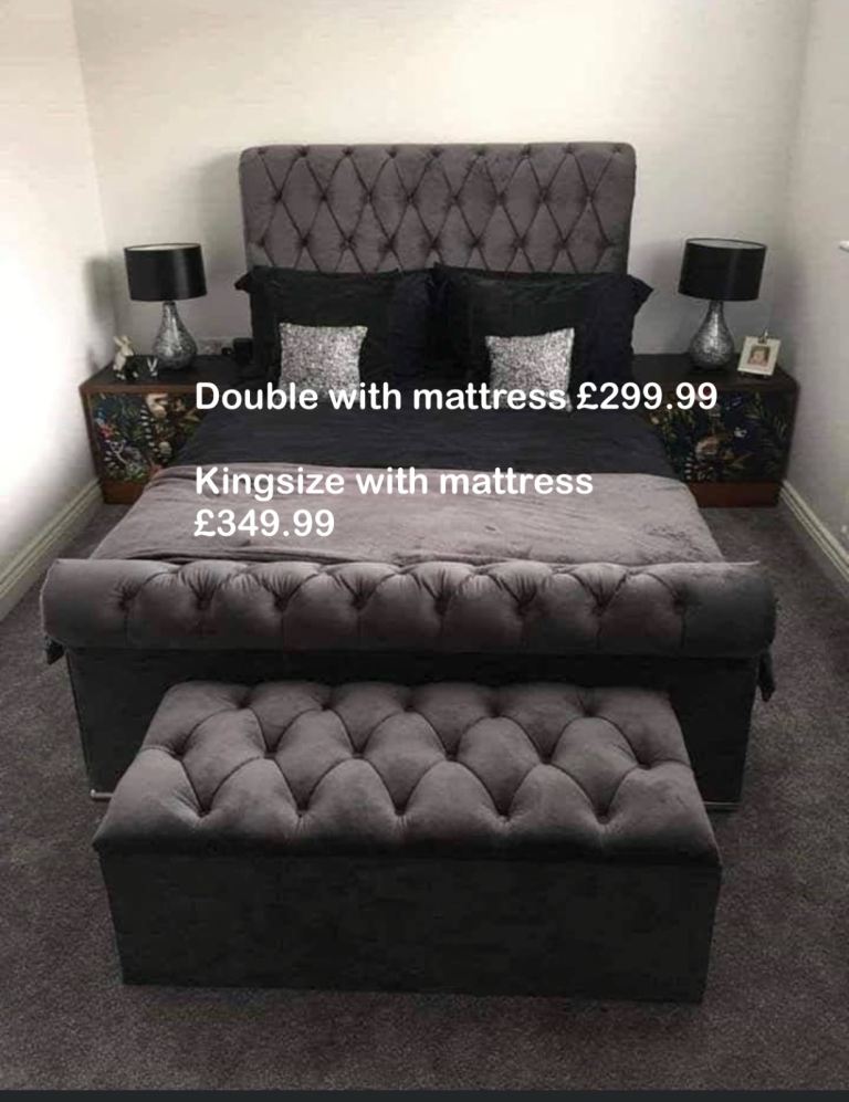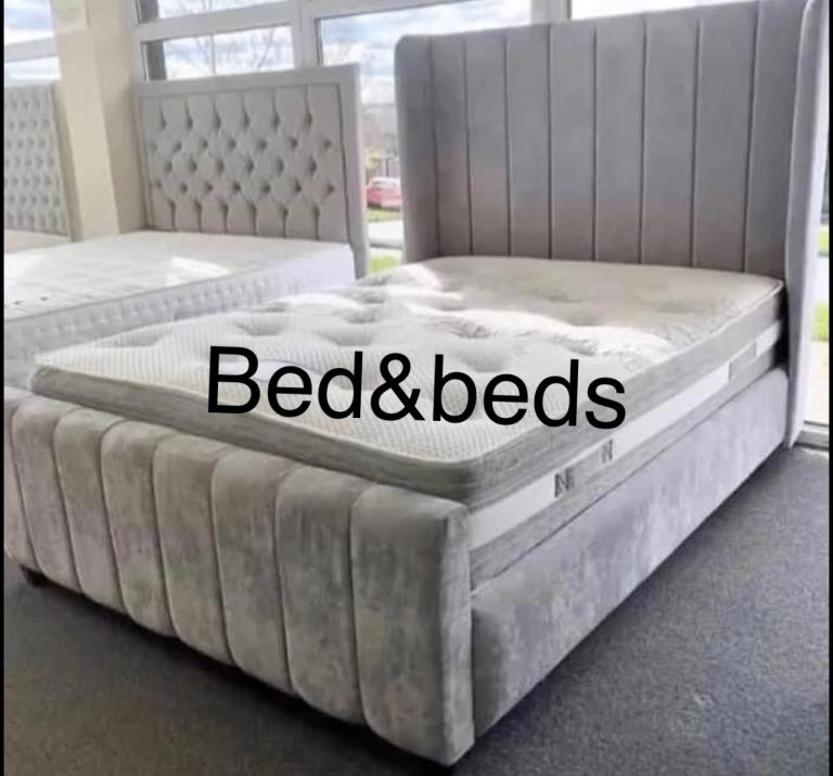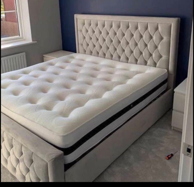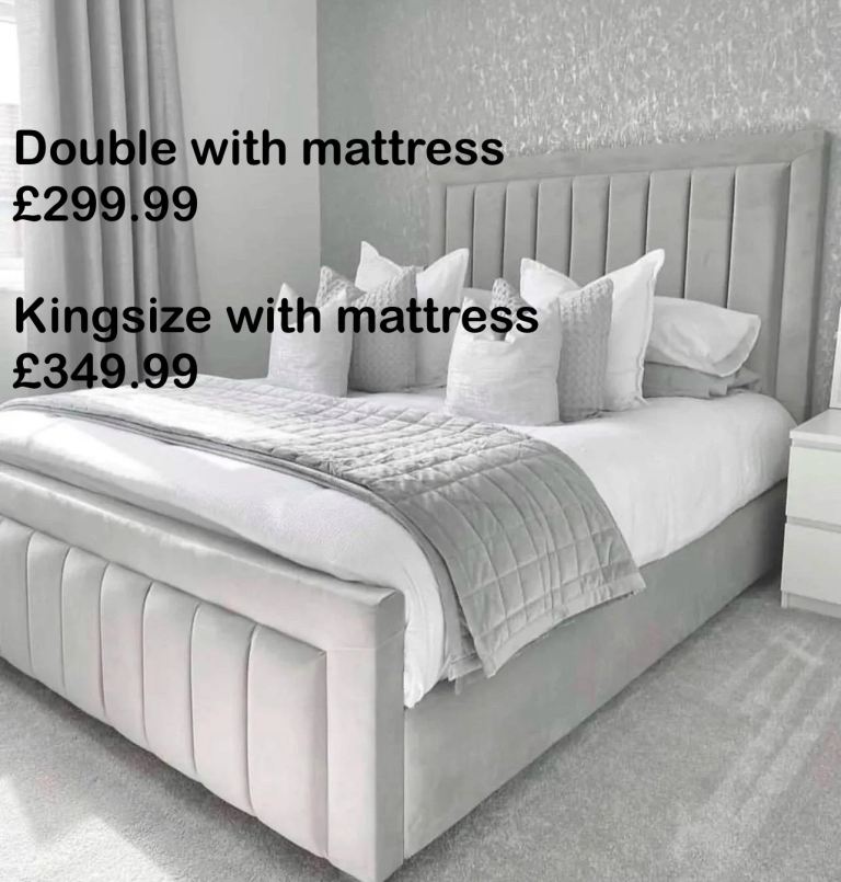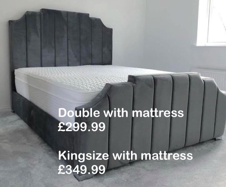 Brand new double small double single kingsize frame beds with mattress and high headboard