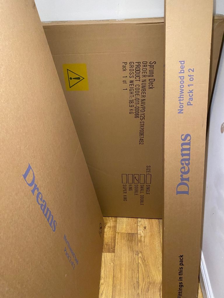 Posting for under a monthBrand new Dreams Northwood wooden bed frame sprung slatted base