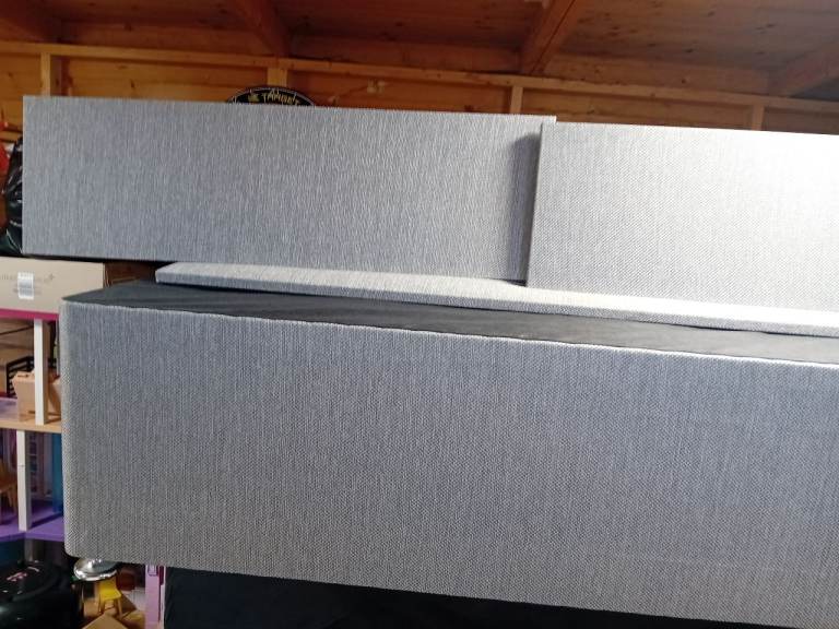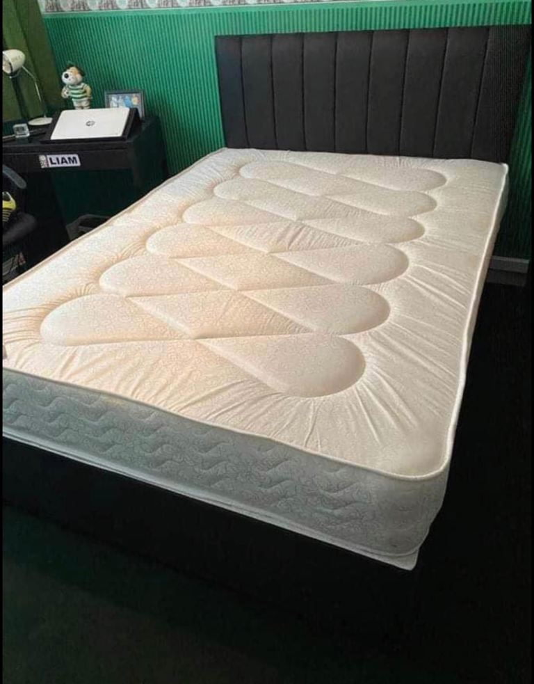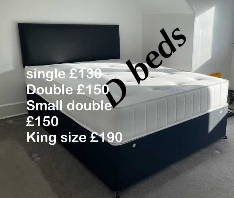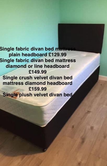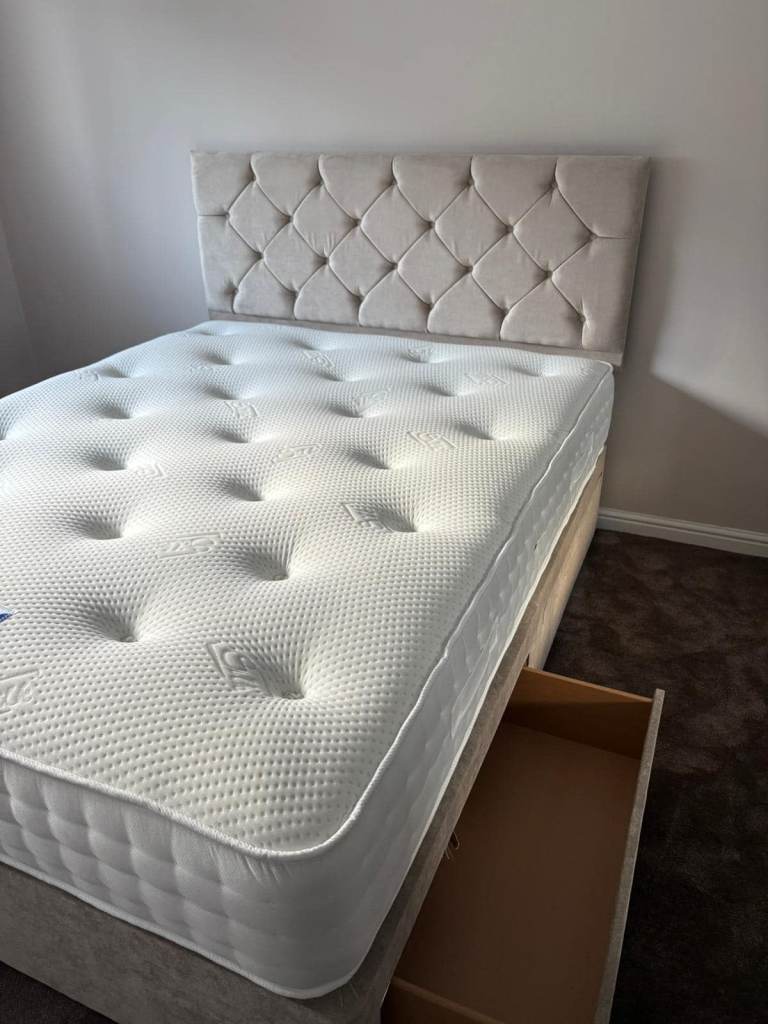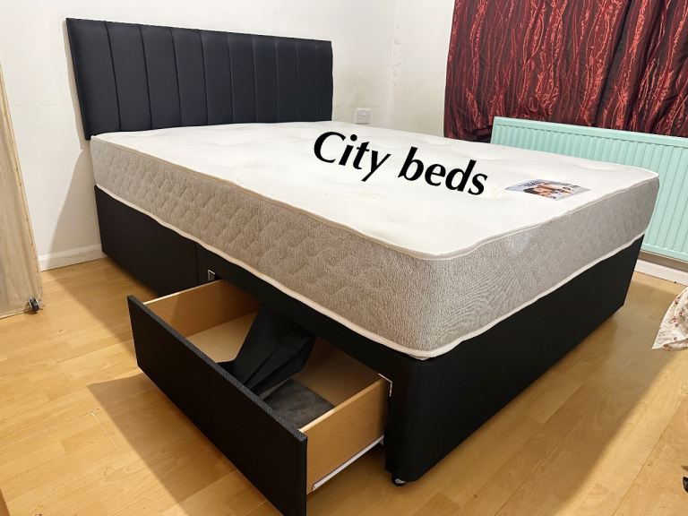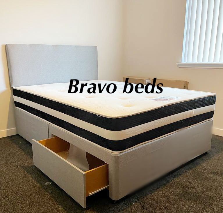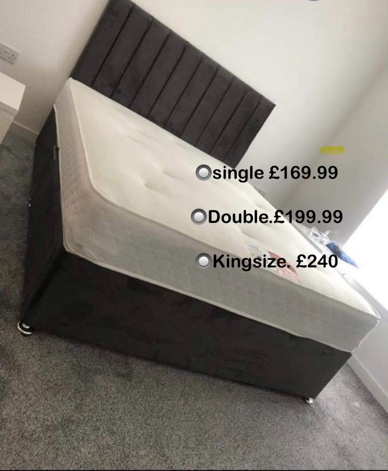 Brand new complete Fabric divan bed with mattress and plain headboard