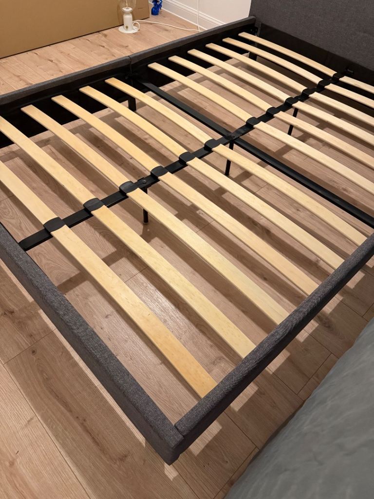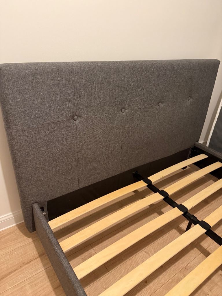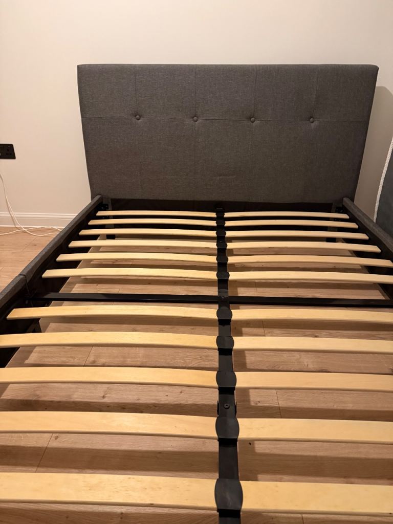 Hello, I have a double bed frame for sale, perfect condition, shades of grey, cushion.