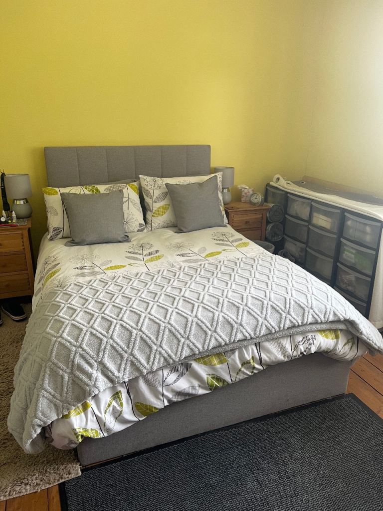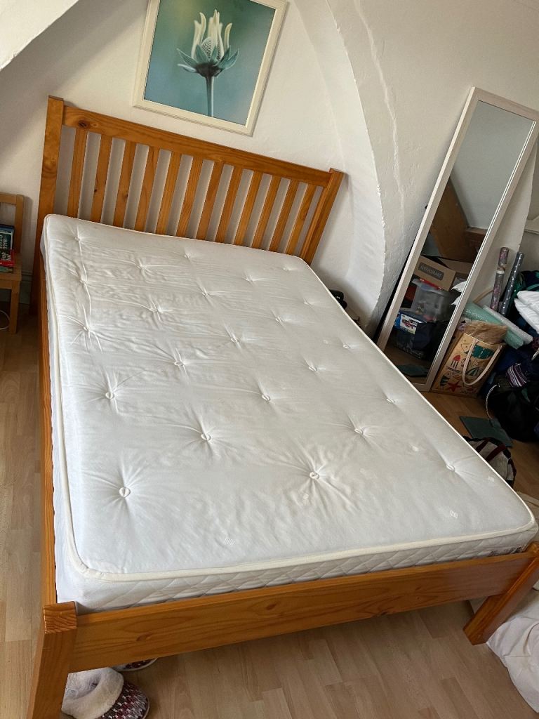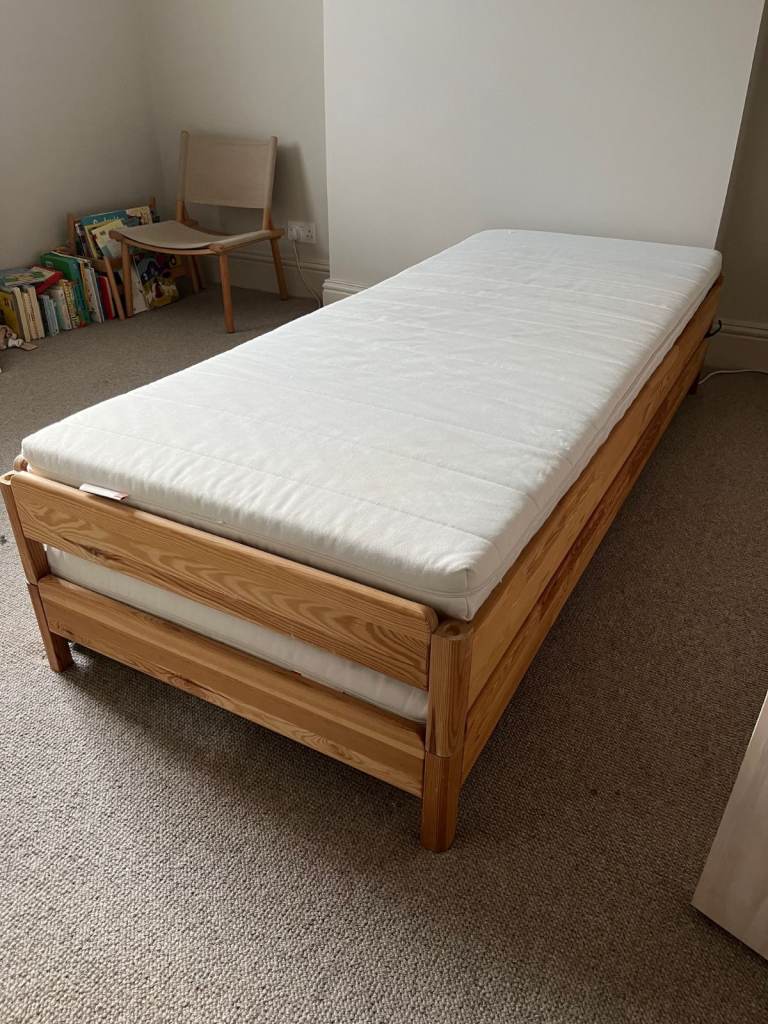 Single day bed which converts into double with single stored underneath. Hardly used and protected with mattress protector. New condition with no marks.
