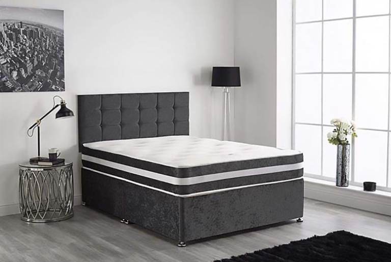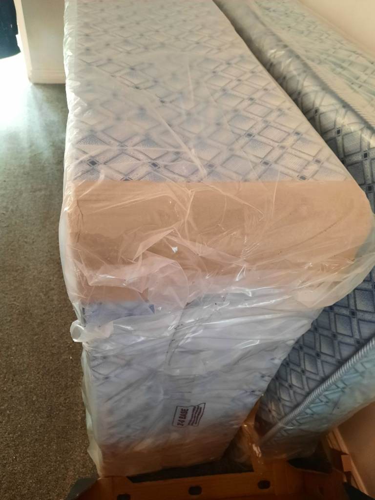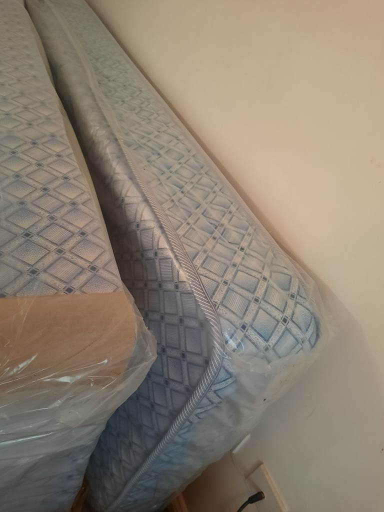 Divan bed and mattress brand new still in plastic covers ,unopened blue grey .£80 only cost over £180 not needed as I ordered double bed but single bed arrived ???so I need the space .