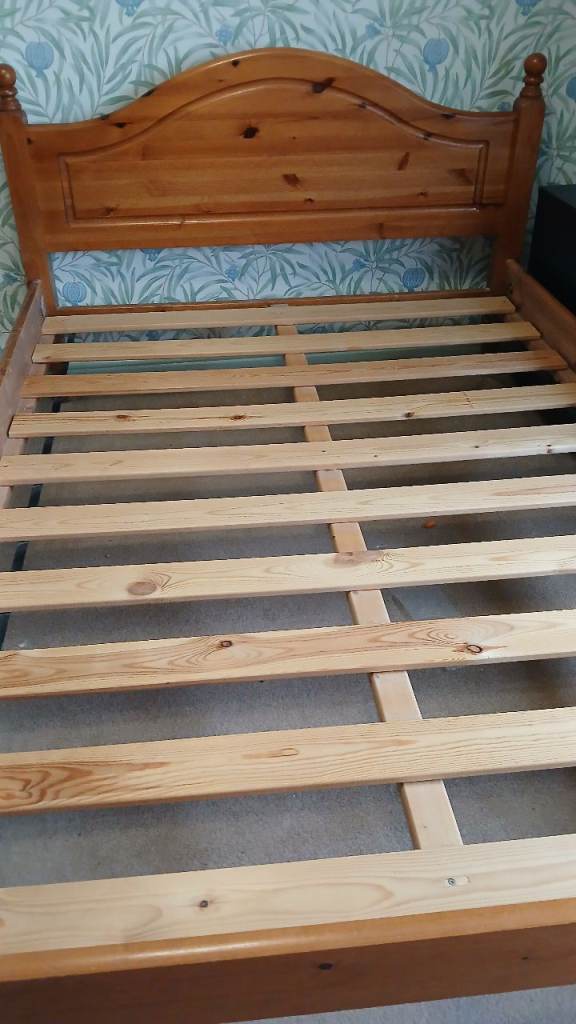 Pine double bed, good condition, sturdy, dismantled, ready for collection.