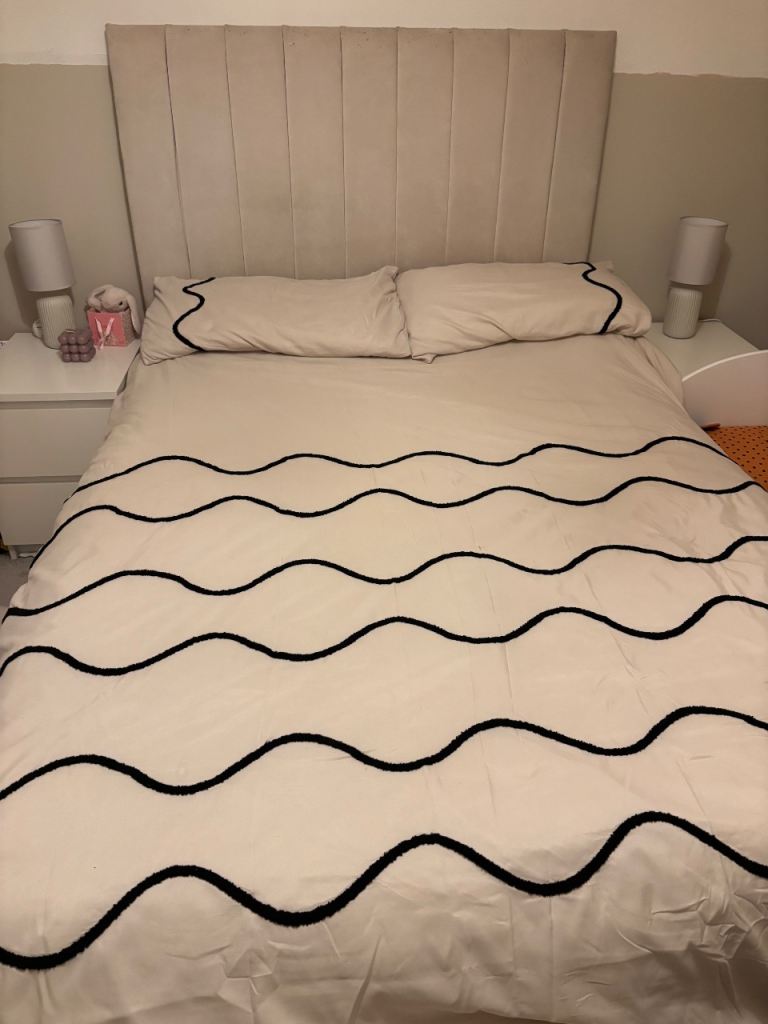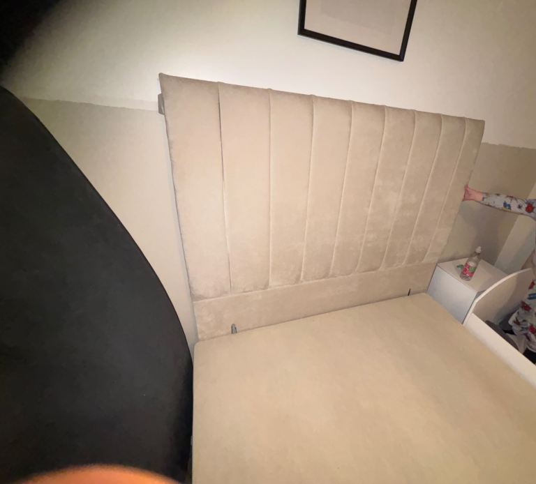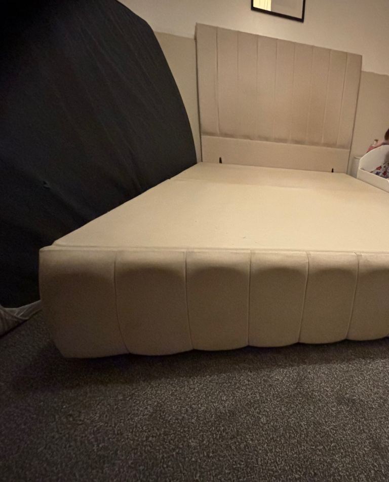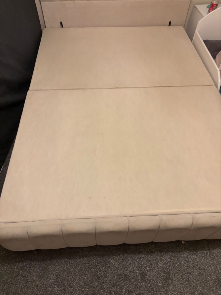Beige velvet double bed frame divan great condition can come with mattress but has fake tan mark can see if I can’t remove it. Collection only