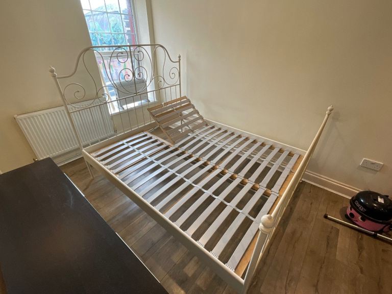 Leather double bed hardly used come with or without mattresses hardly been used in spare room xx