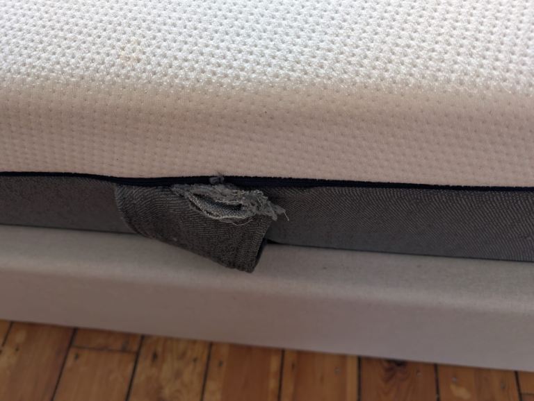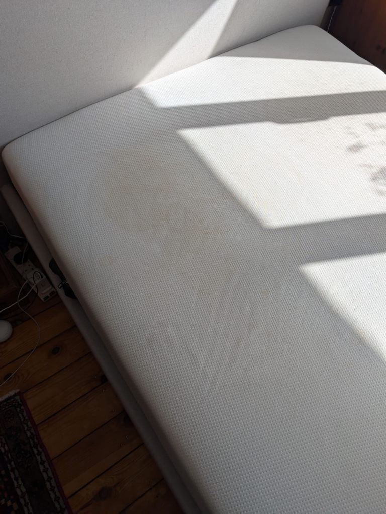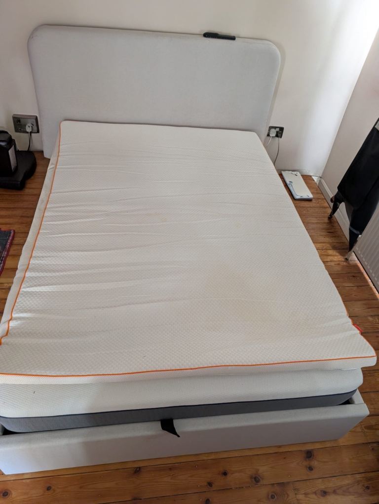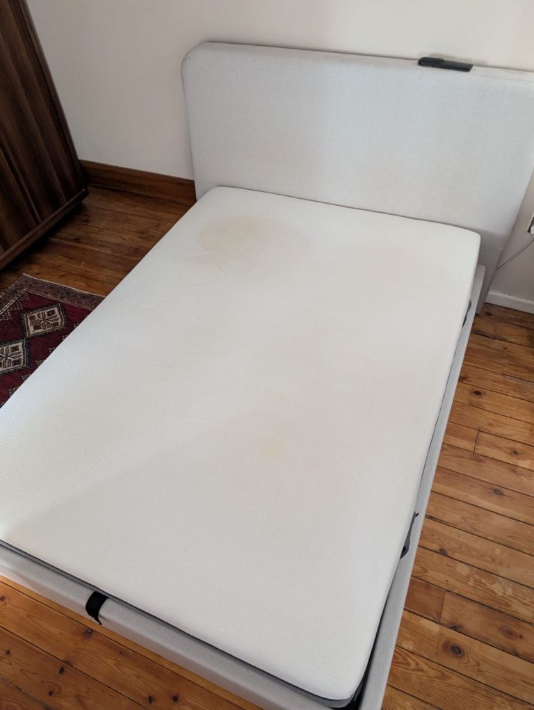 Emma Mattress about 5 years old. Some stains but the cover can be washed and one handle slightly ripped. Mattress protector also included for free. Selling for £50 individually. (RRP £431)