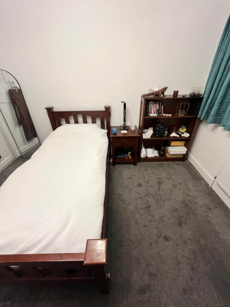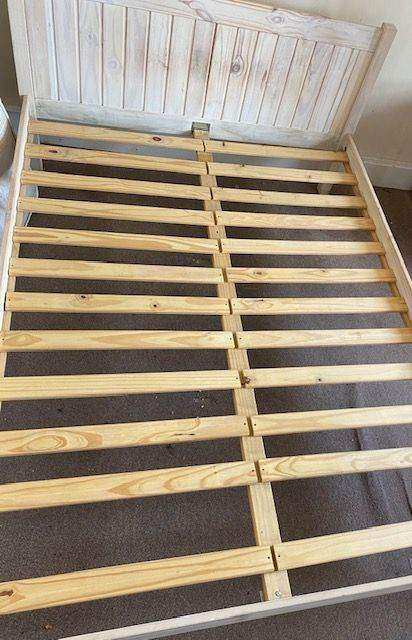 Double bed with 'whiteswash' frame. Bought about 6 years ago for spare room.