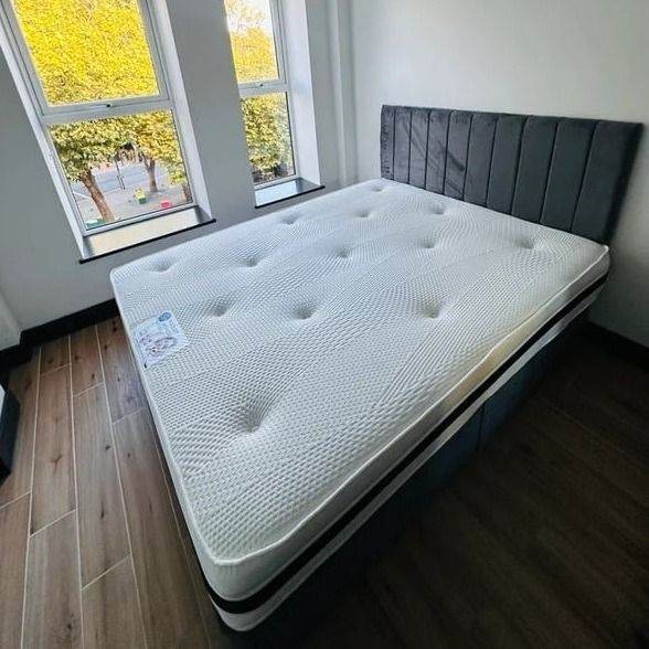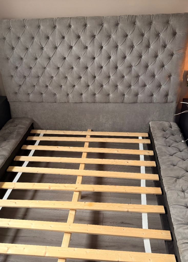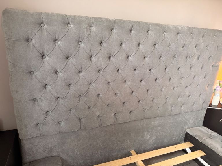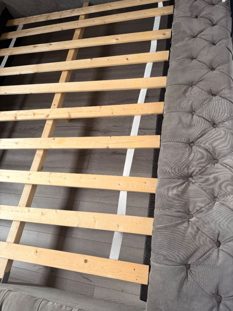 There are a few marks and light stains on the fabric, which could be easily cleaned with carpet or upholstery shampoo. Structurally the bed frame is in great condition and has plenty of life left in it.