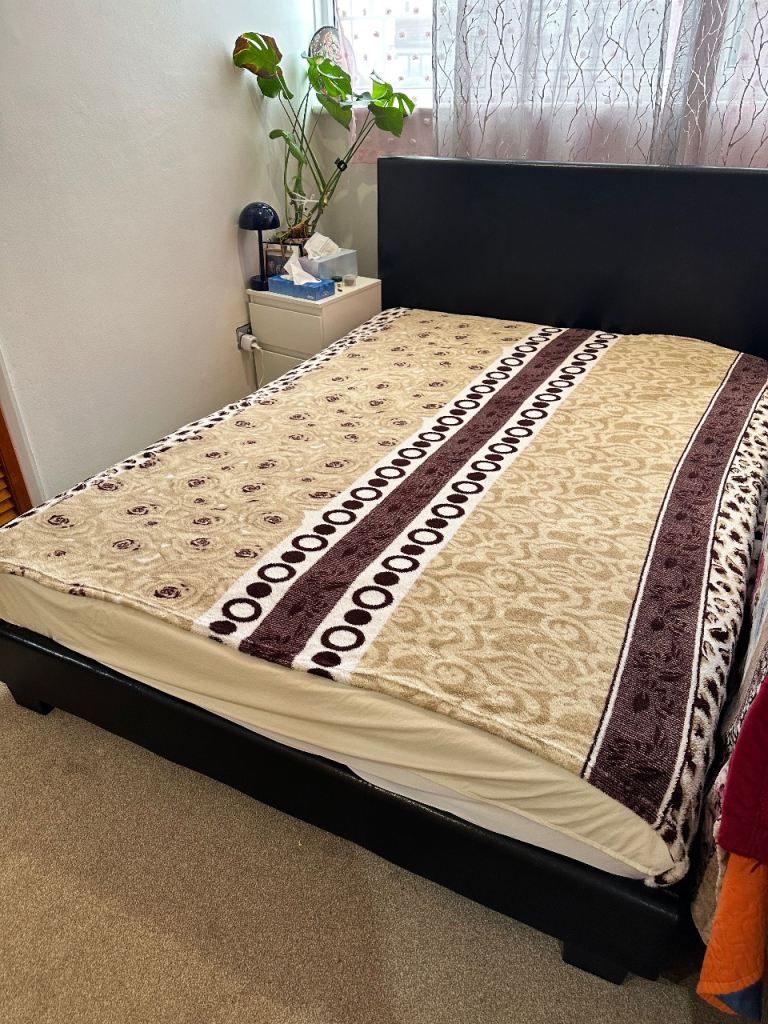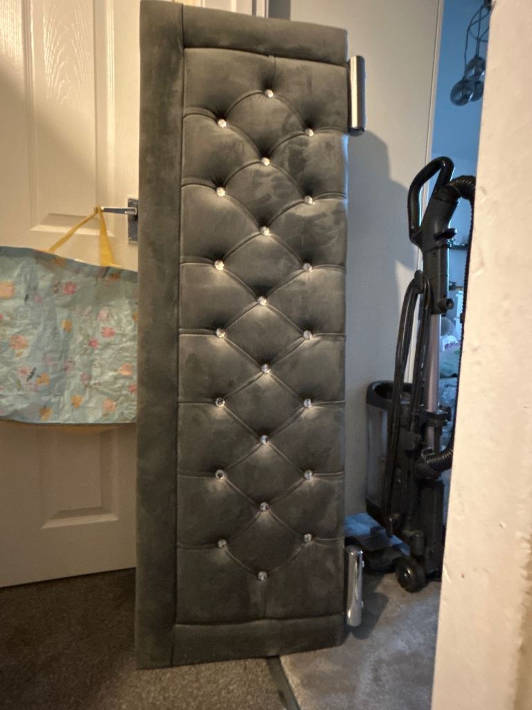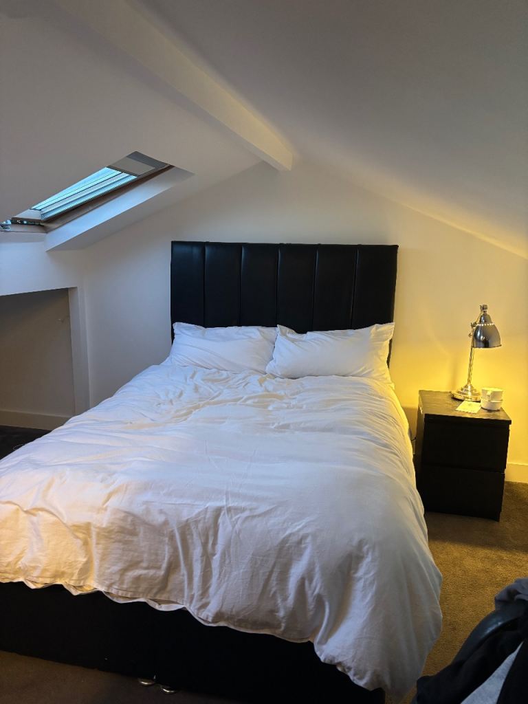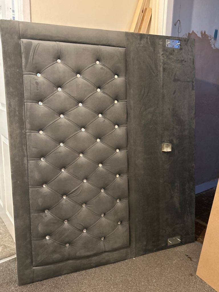 Double bed frame for sale, is dismantle, wooden slats,that’s why I have put up a picture as it built, there is slight damage at the bottom-can be seen in the picture.
