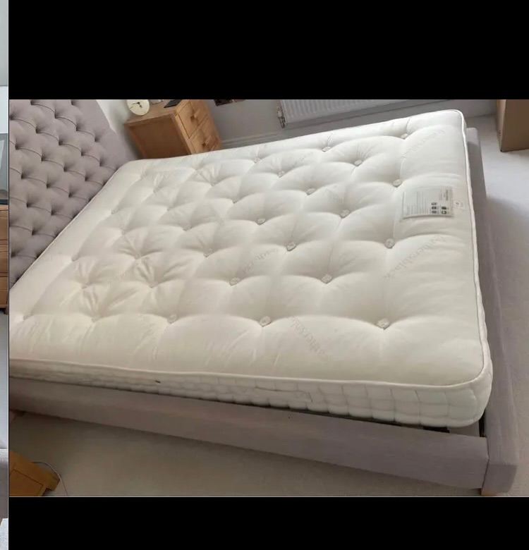 Beige fabric double bed frame for sale. In really good condition. Neutral colour that suits any bedroom, very solid and supportive frame.