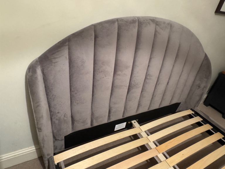 Posting for 13+ yearsDouble bed frame, King Size 5ft, grey velvet upholstery