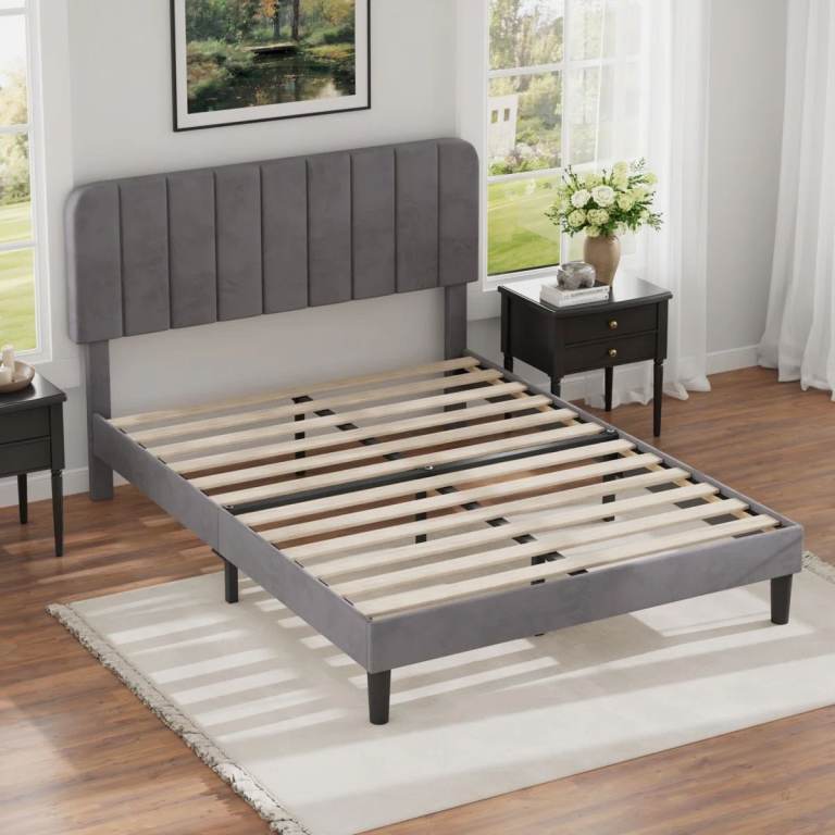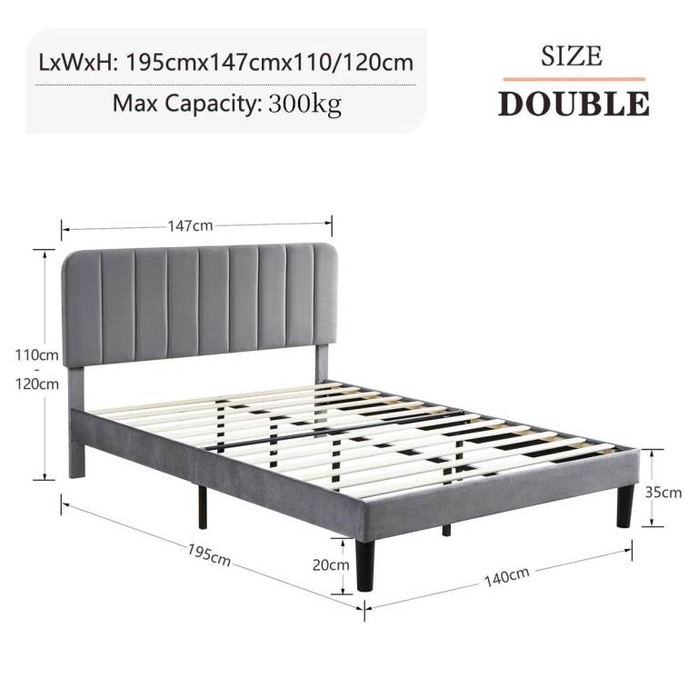 Sturdy and attractive bed frame with an adjustable head frame and upholstered in velvet. It's easy to assemble and looks terrific in any room. Was purchased recently in October 2025. Need to sell as relocating abroad for work purposes.