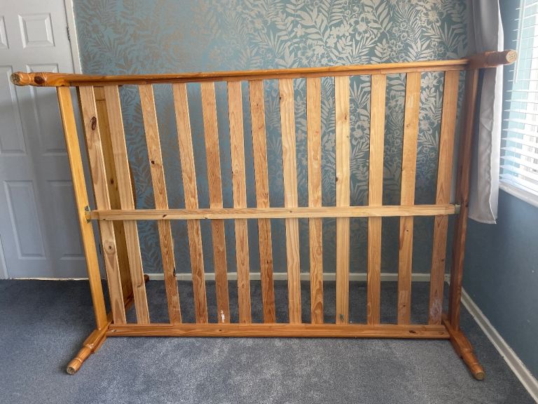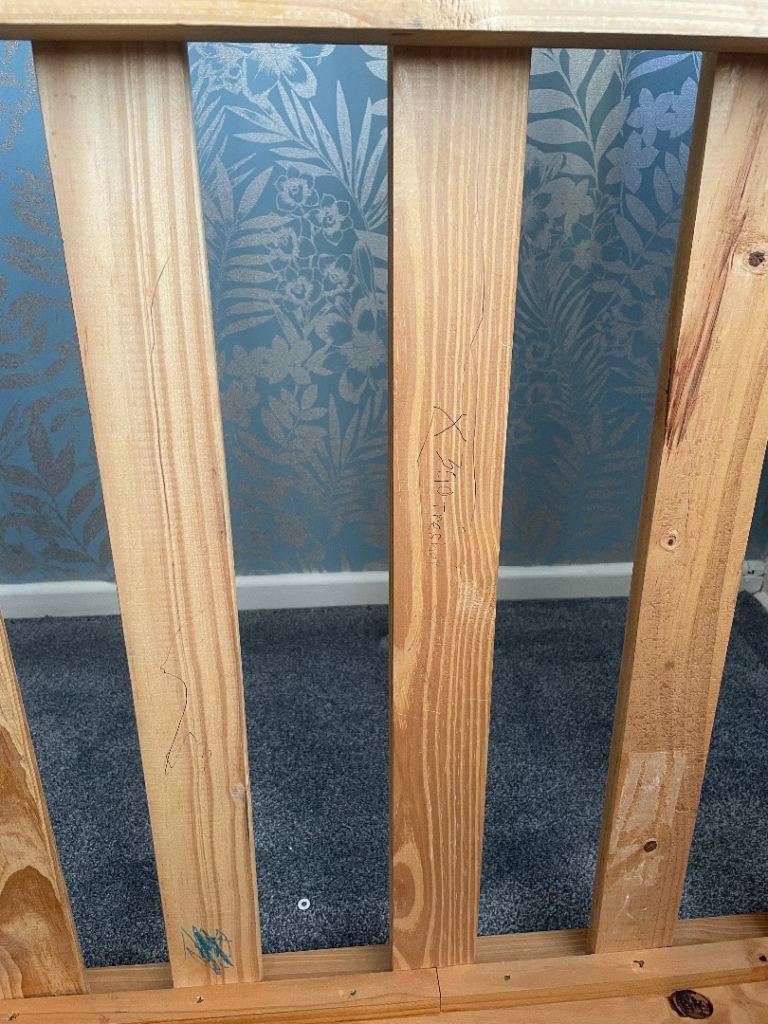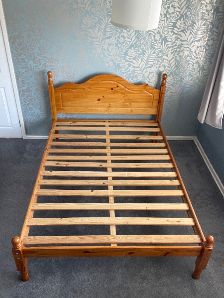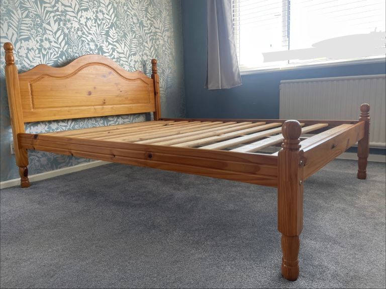 Solid wood bed frame.