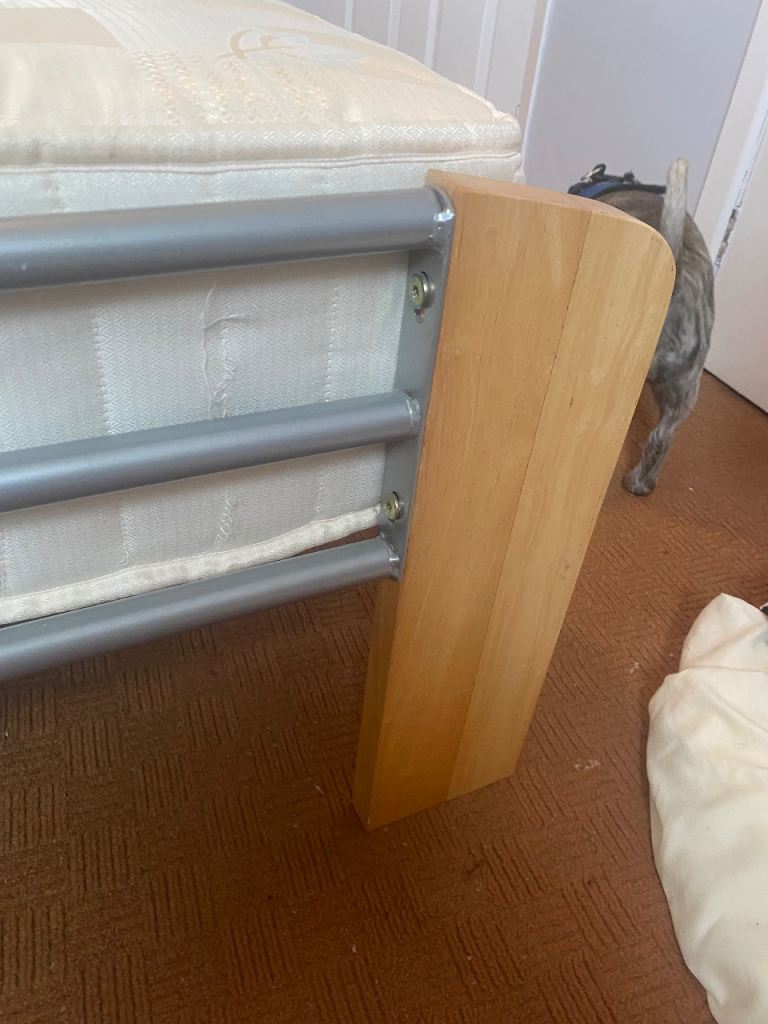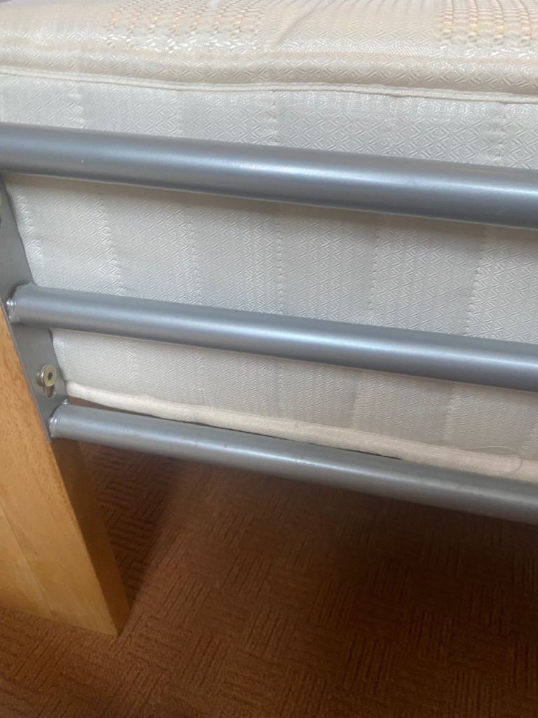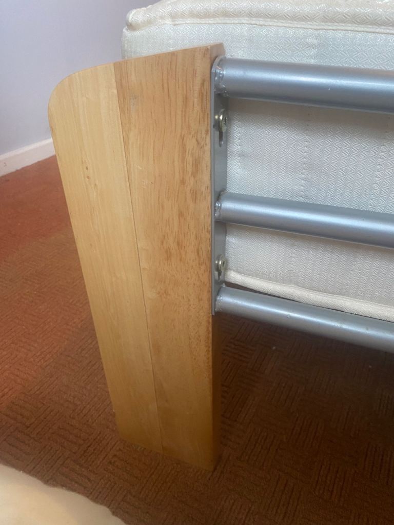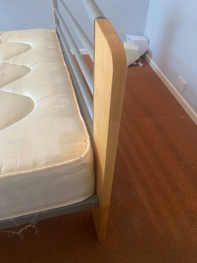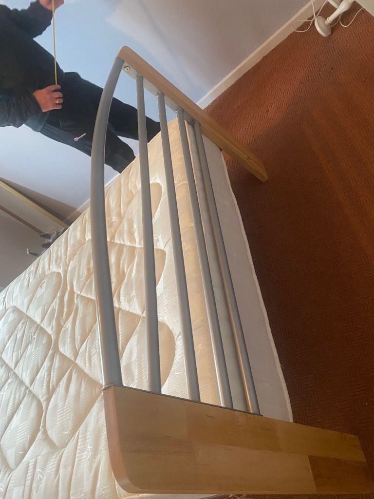 As above, sturdy bed frame and mattress for sale. Rarely slept in as it was used for guests in a guest bedroom. Collection only Lisburn. Buyer will need to dismantle using Allen key. Photos show measurements and Allen key slots. No withekd numbers please. First come first served. Thanks