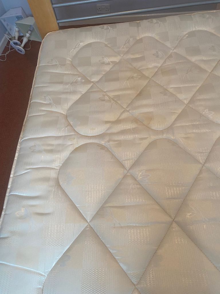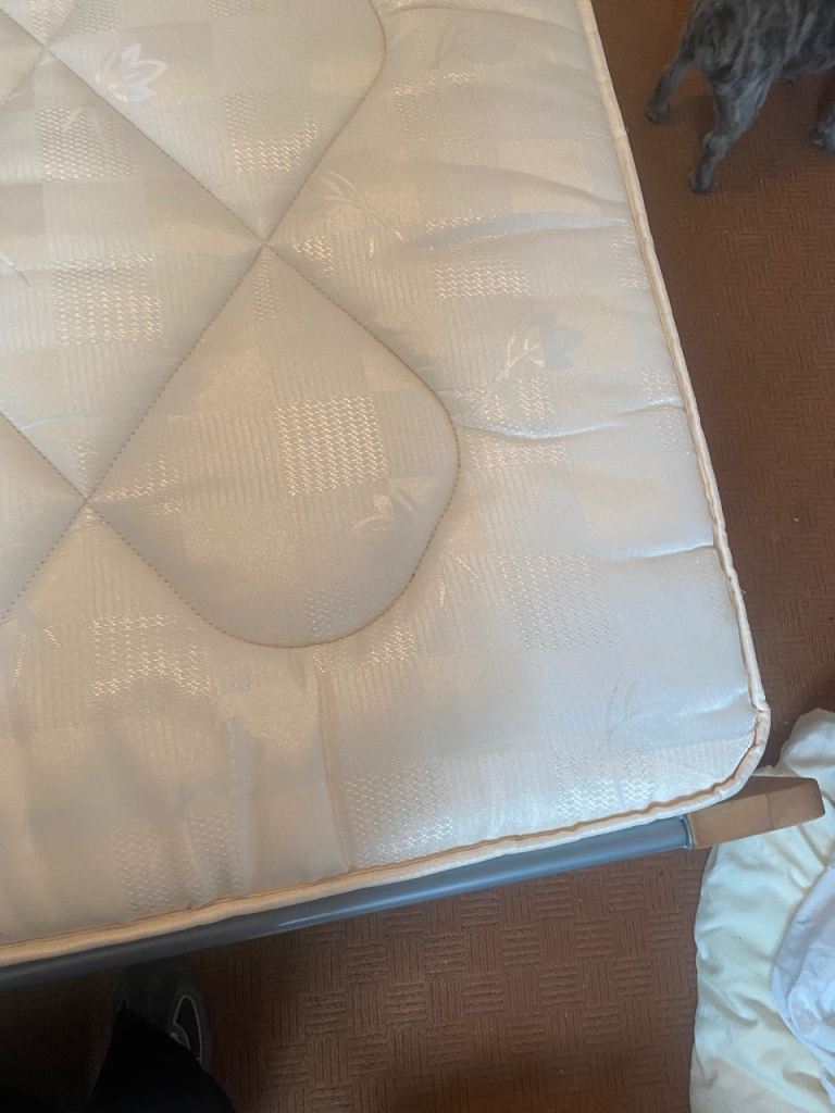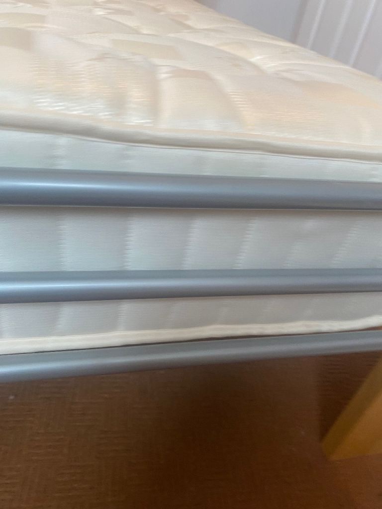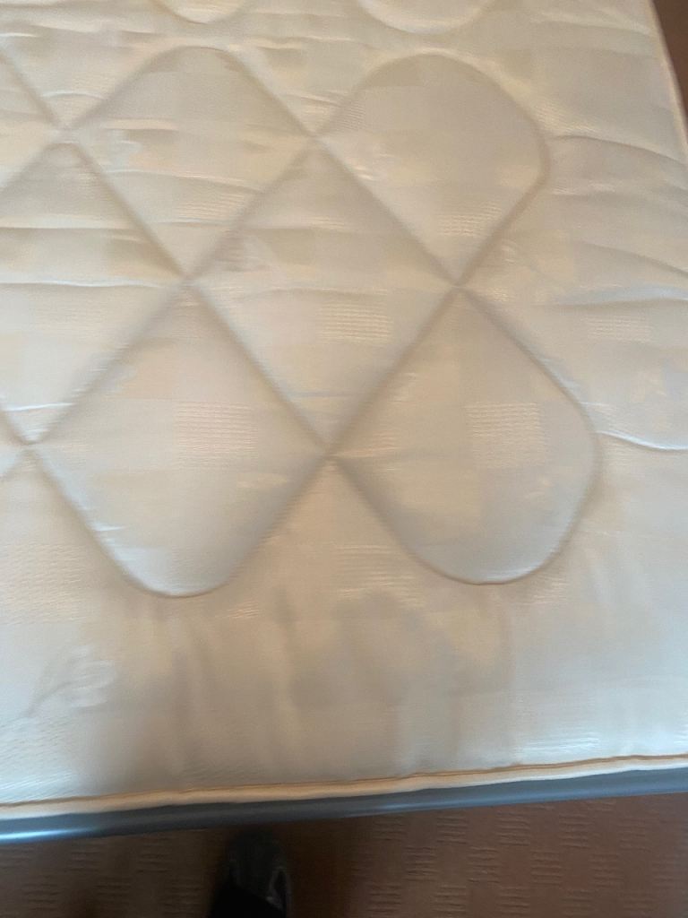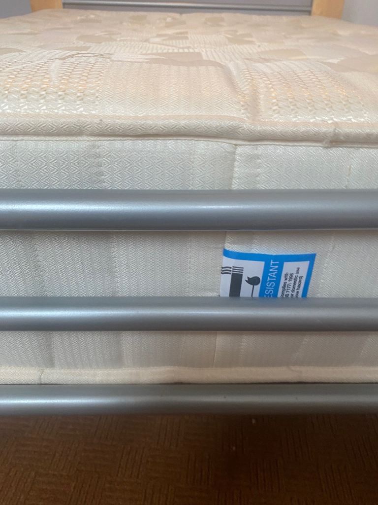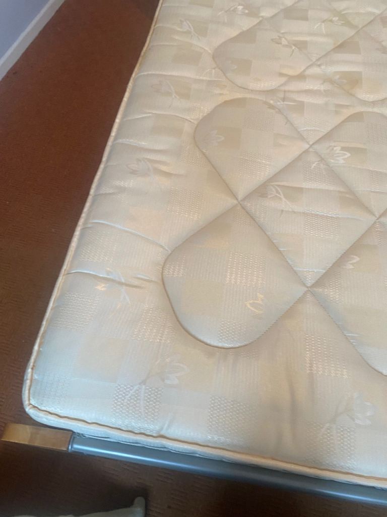 As above, sturdy bed frame and mattress for sale. Rarely slept in as it was used for guests in a guest bedroom. Collection only Lisburn. Buyer will need to dismantle using Allen key. Photos show measurements and Allen key slots. No withekd numbers please. First come first served. Thanks