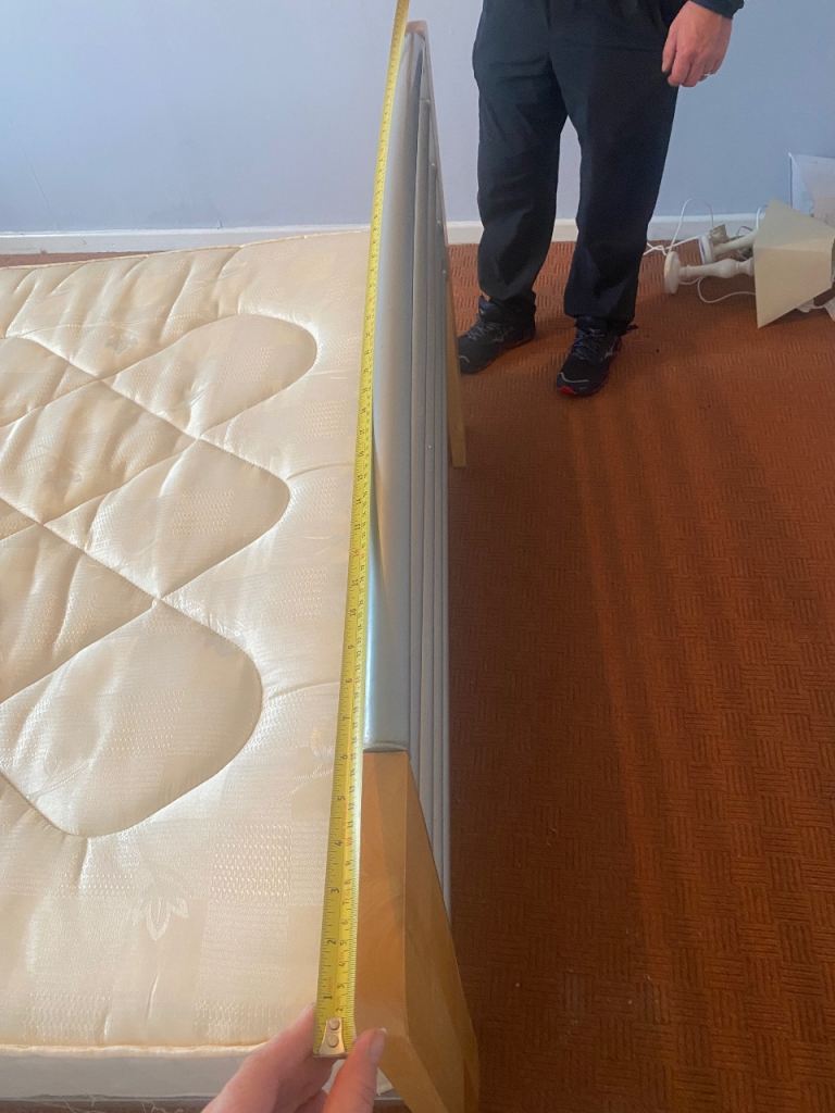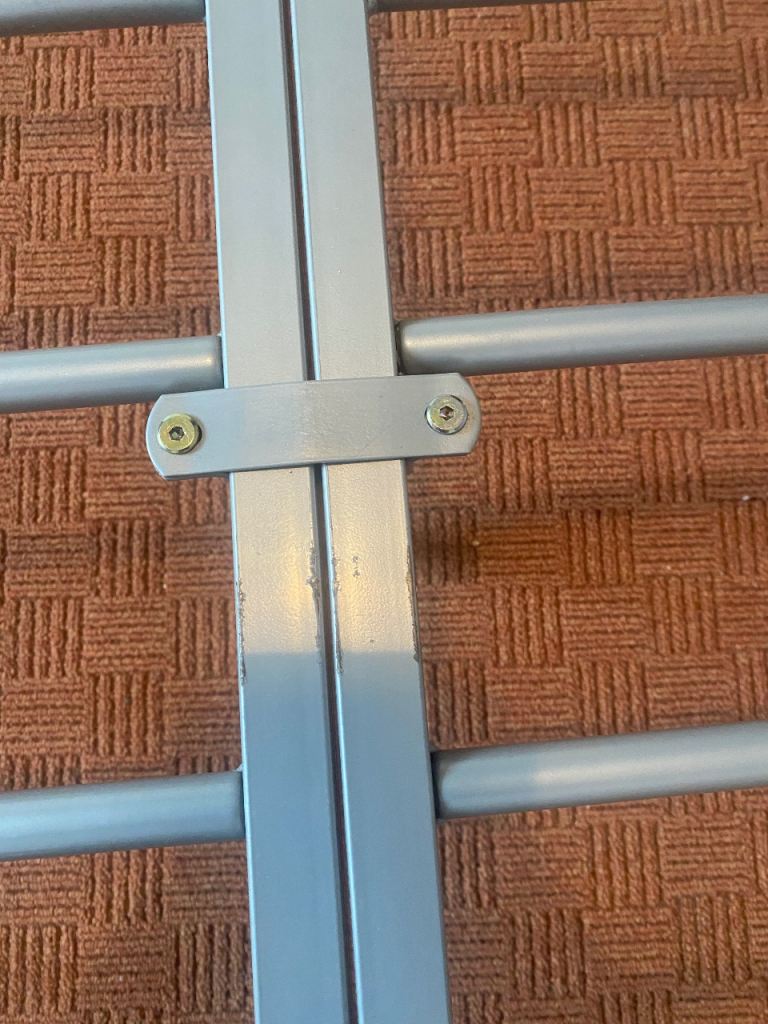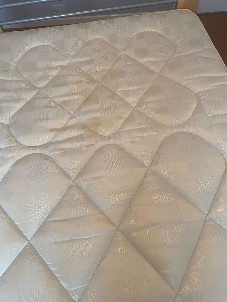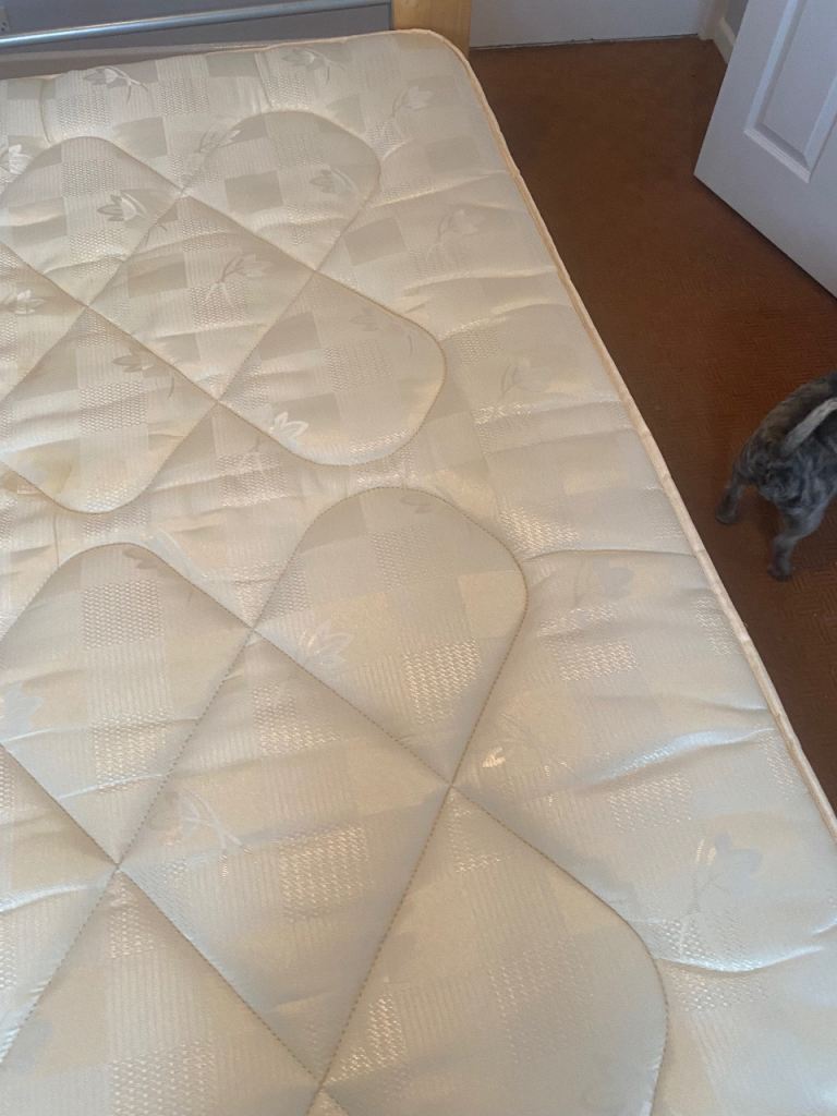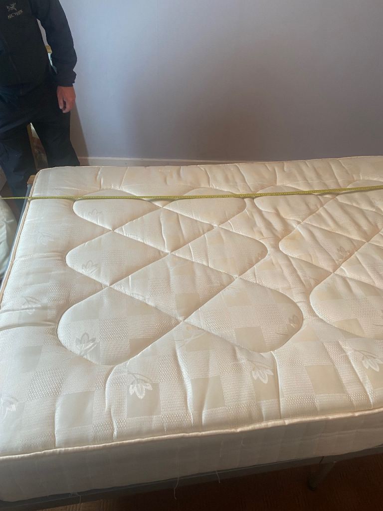 As above, sturdy bed frame and mattress for sale. Rarely slept in as it was used for guests in a guest bedroom. Collection only Lisburn. Buyer will need to dismantle using Allen key. Photos show measurements and Allen key slots. No withekd numbers please. First come first served. Thanks