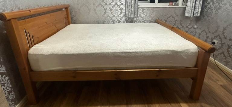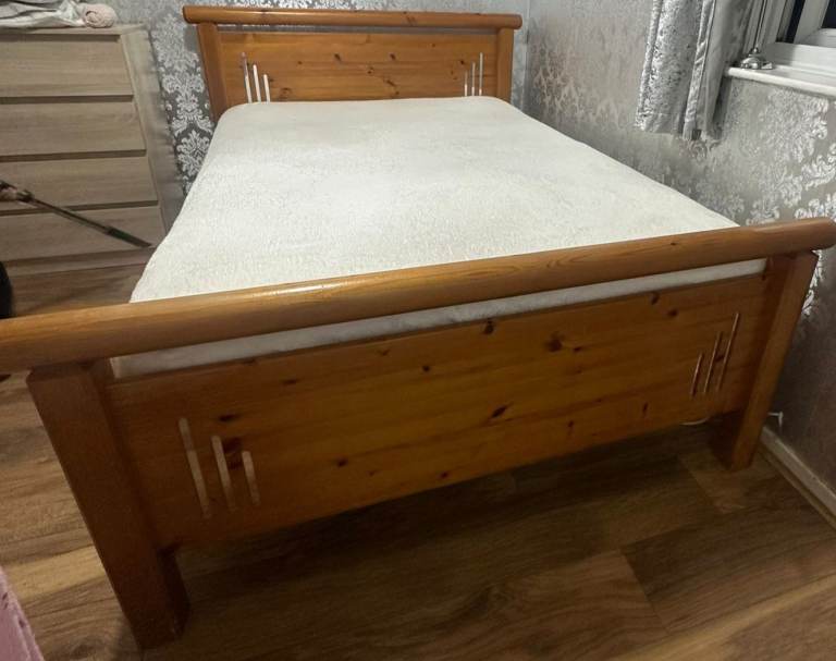 Double Pine Wood Bed with Mattress for sale. Good Used Condition. Collection in person welcome. Can arrange delivery if local. Thanks