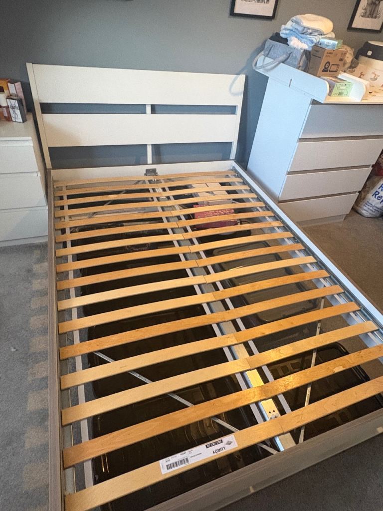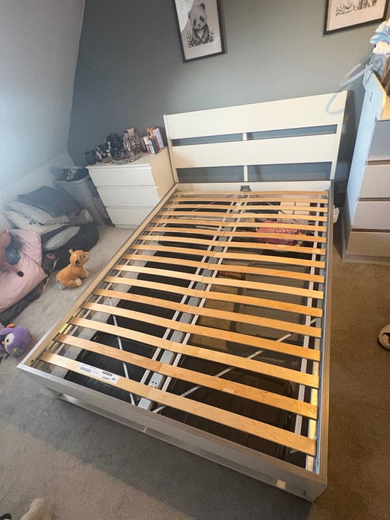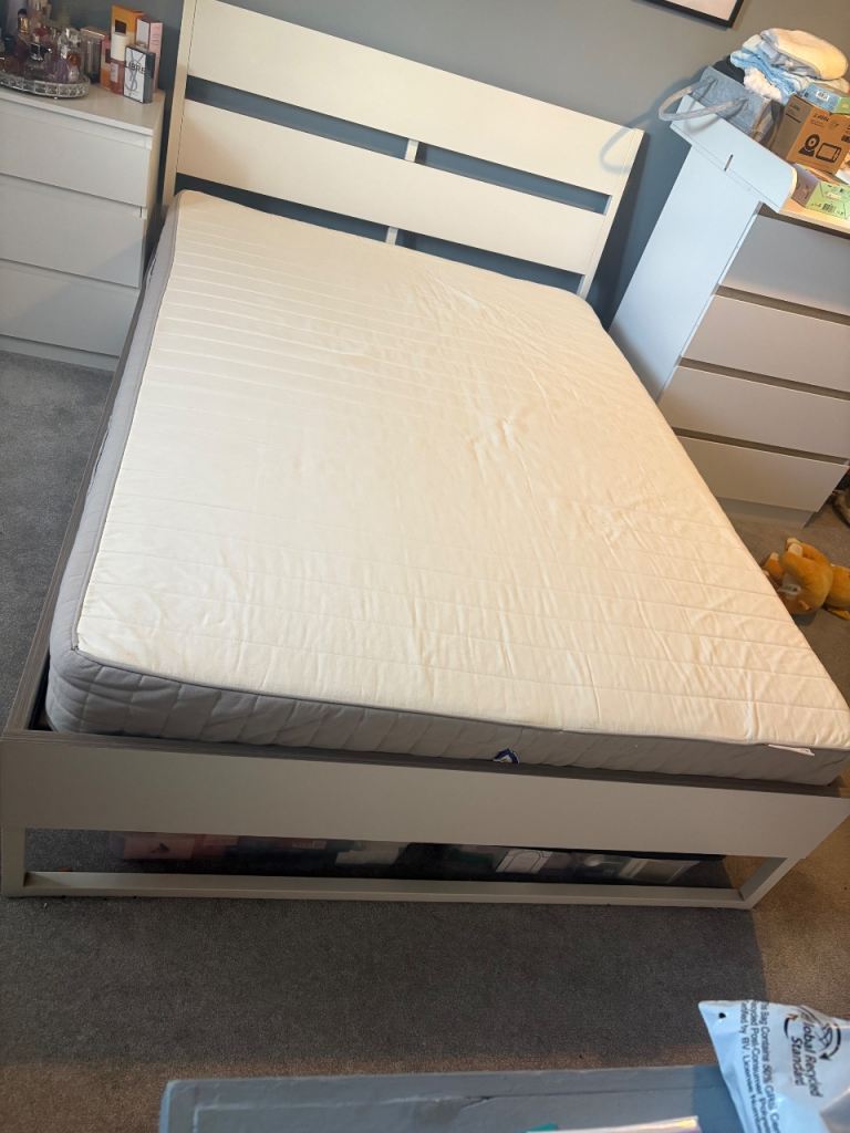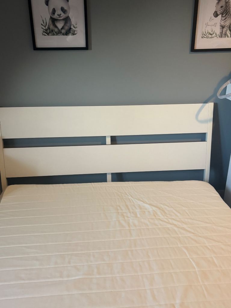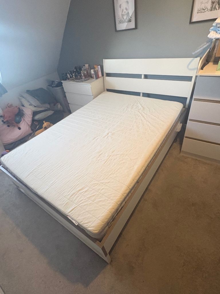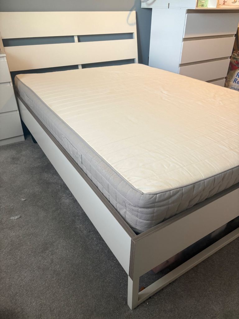 Double Bed with mattress for sale, has been in guest bedroom so very good condition due to it not being used much. Selling with mattress but can can be sold without mattress if not required.