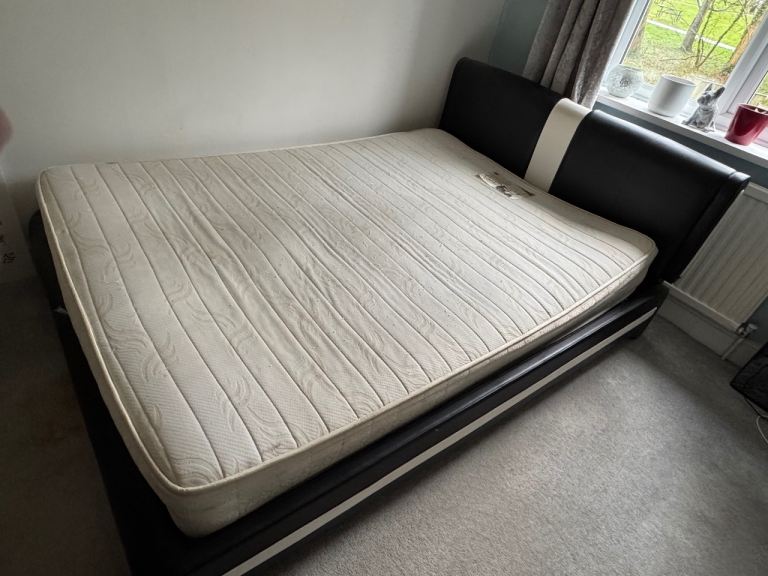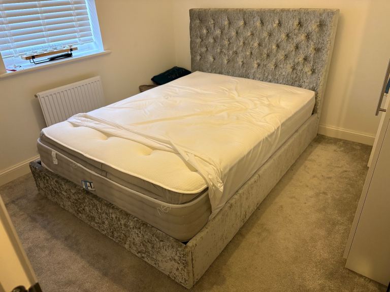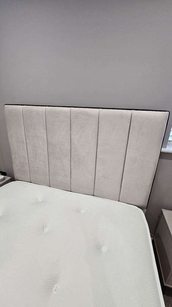 Stunning Double bed with 54inch headboard in plush velvet cream trimmed with black edge.
