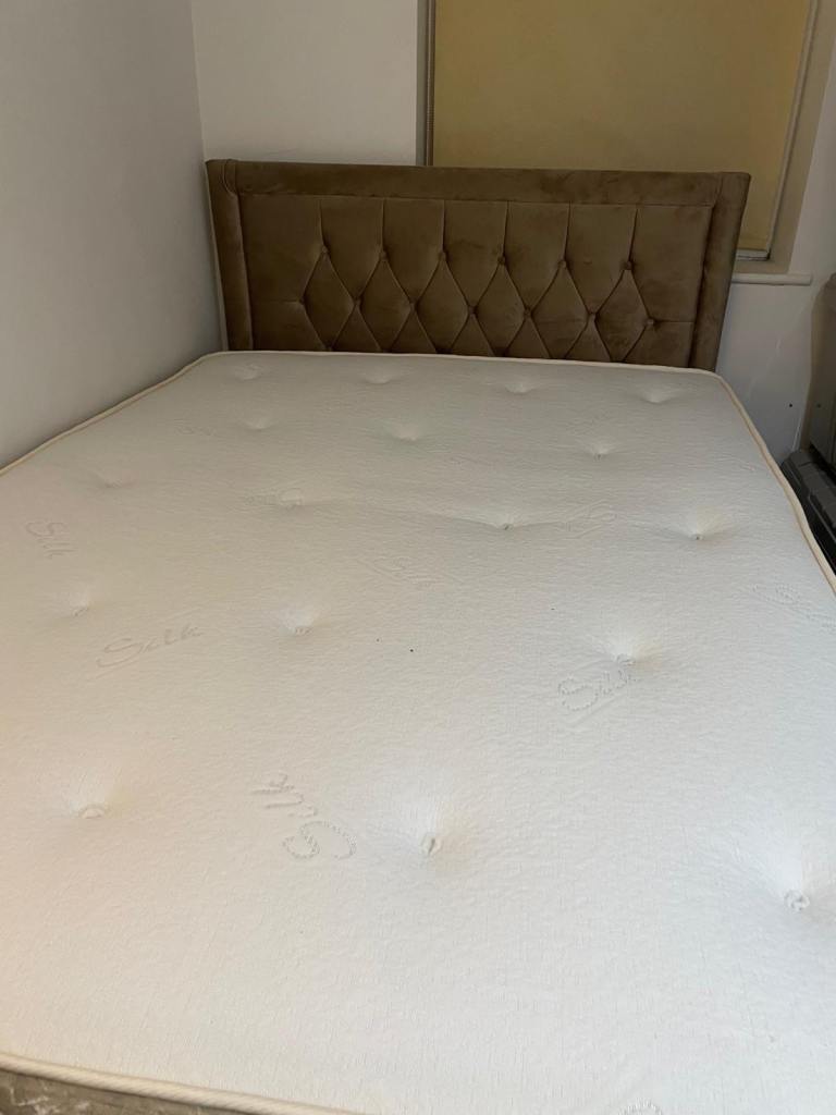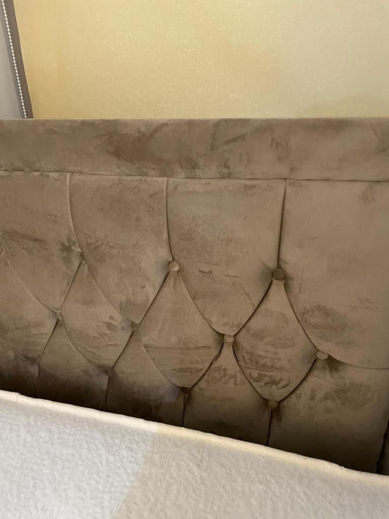 Sprung Divan Base in Oatmeal + Wayfair Caramel Velvet headboard