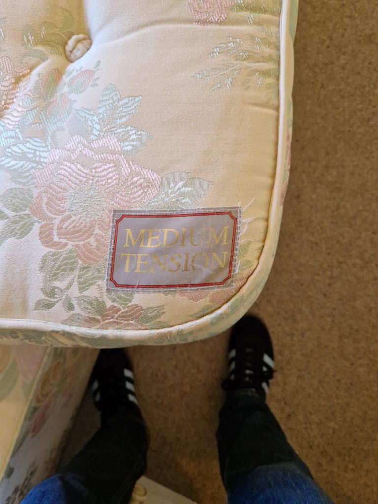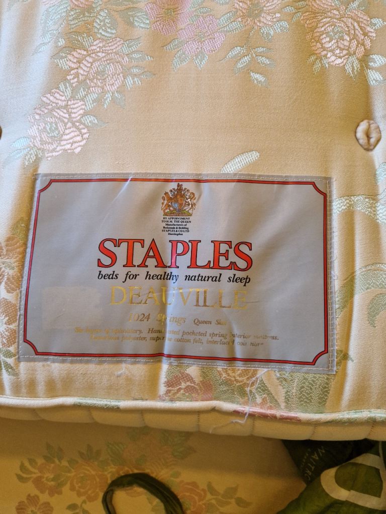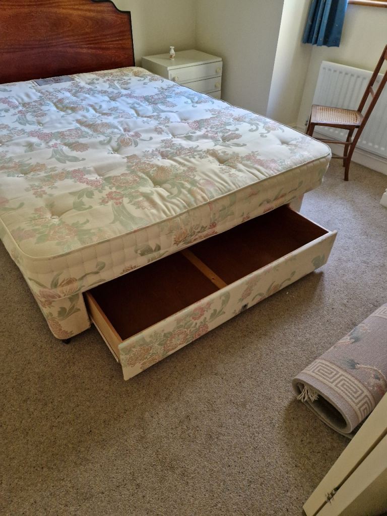 Staples double divan bed and mahogany headboard.