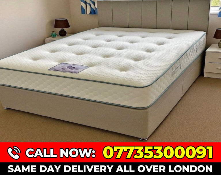 Double divan bed with mattress and drawers