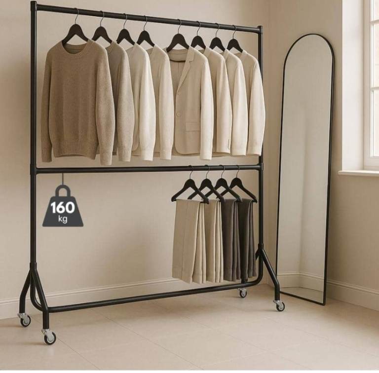 Double metal headboard.