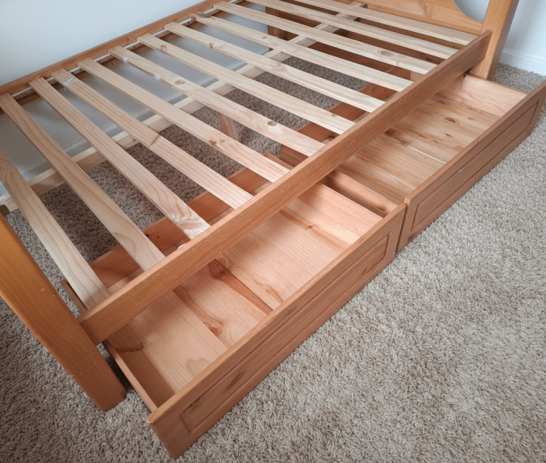 Double Solid Pine Wooden Bed Frame With 2 Drawers + Mattress.