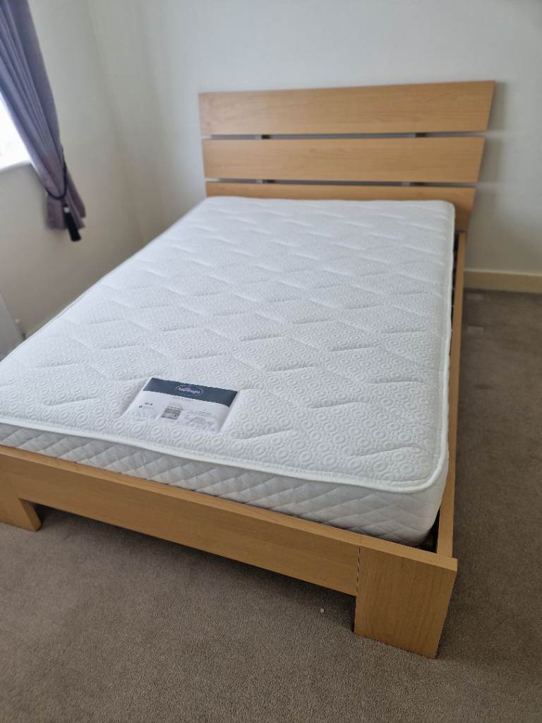 Double wood bedframe complete with mattress frame very heavy and solid sturdy all in good clean condition can do a free delivery around Chester le street area today