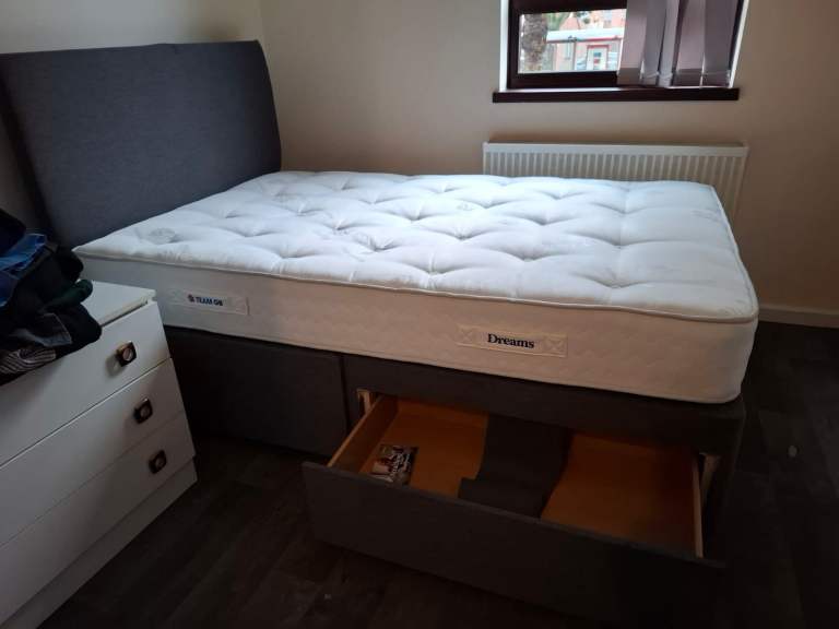 Posting for under a monthDreams Small Double bed (4 foot) with two drawer divan and fossil grey headboard