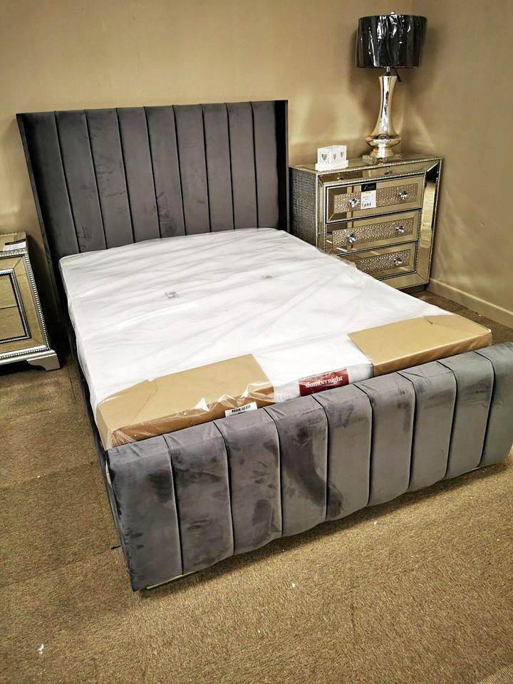 DIVAN BED || Double Divan Bed Panel line bed grey with mattress FREE DELVIERY
