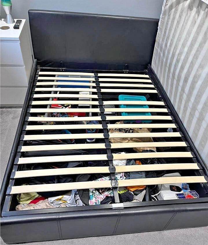 Extreme Sale : 4ft6 Double leather Bed Frame with Gas lift ottomam storage !! Mattress optional