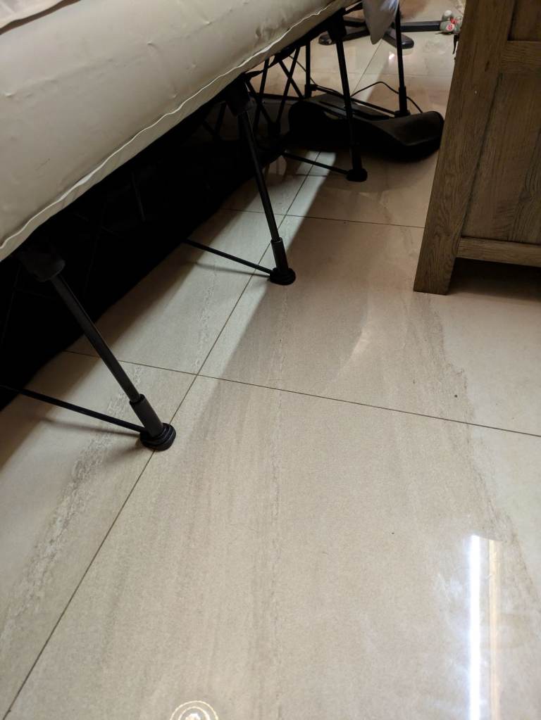 The Bed has been cleaned thoroughly but there are a few water marks Hence such a low price.