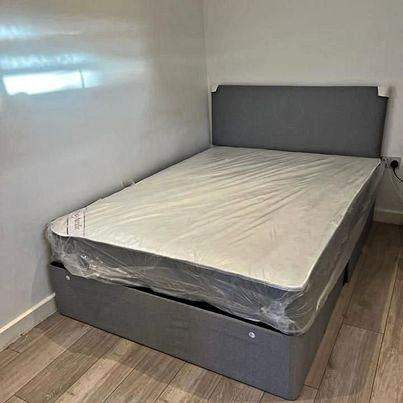 GET TODAY DELIVERY === 4ft6 Double Divan Bed With Plain Headboard With Mattress ~ COD