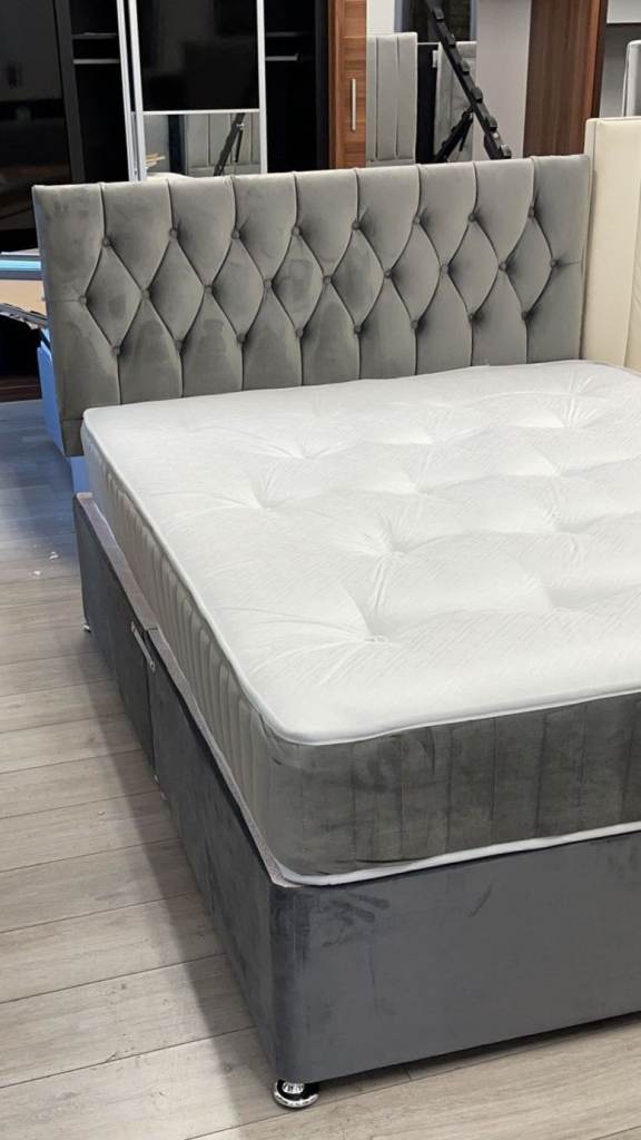 DIVAN BED || Double Divan Bed Panel line bed grey with mattress FREE DELVIERY