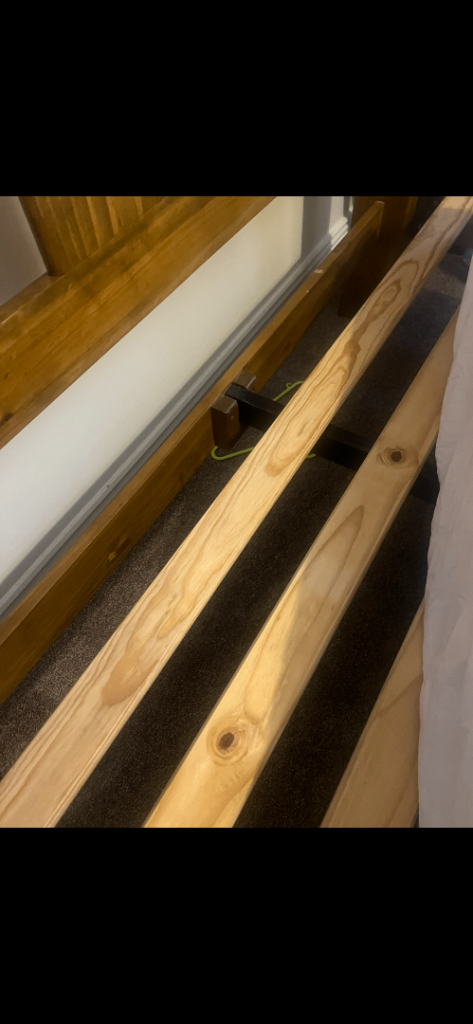 Stunning solid wood double bed frame already dismantled no breaks in slats or bed can view in stone staffs