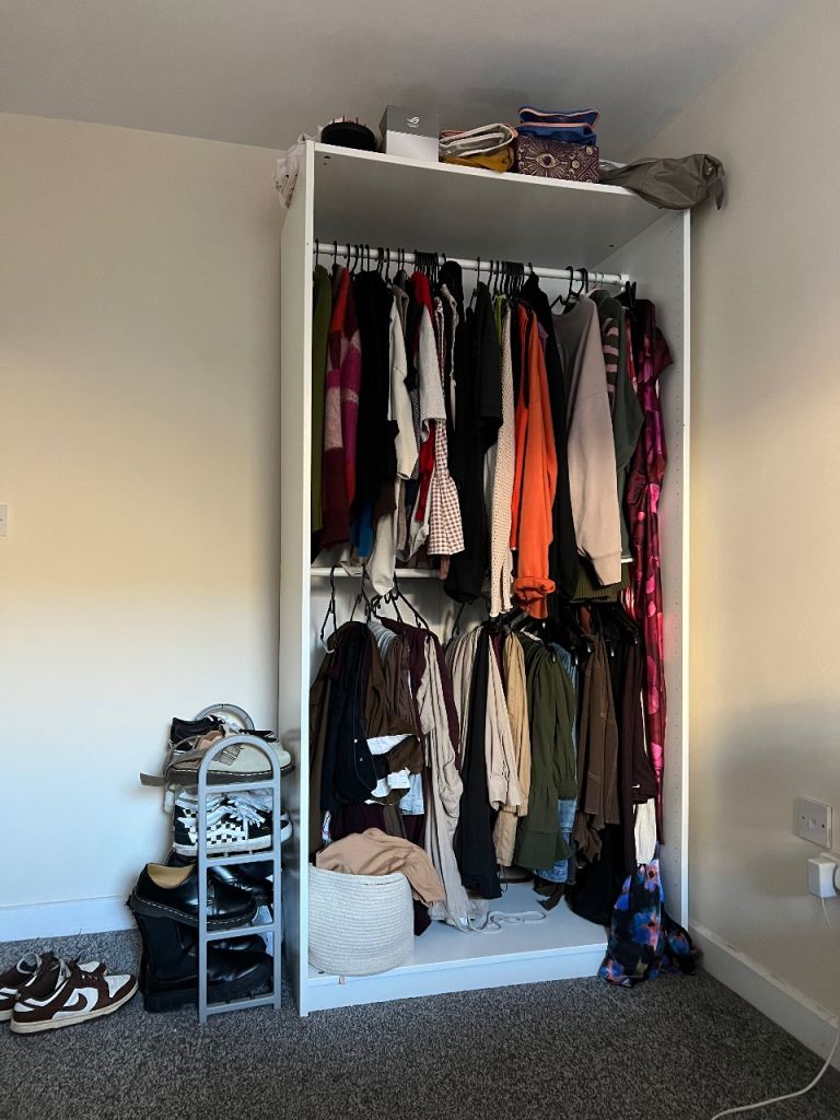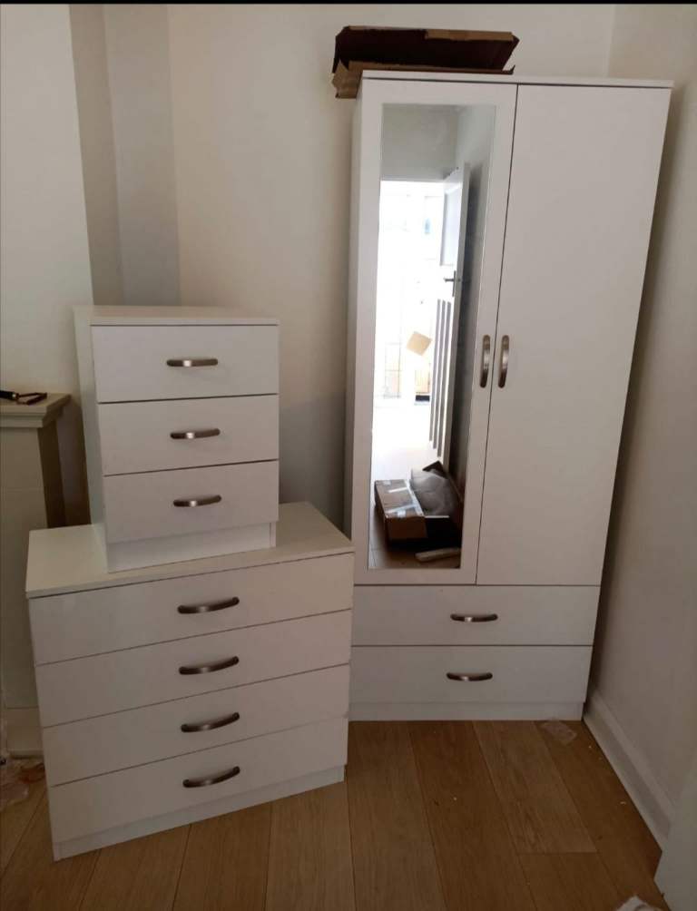 In good used condition. Brand new unopened set of slats included. Sturdy frame, clean, drawers slide smoothly. Comes disassembled (except for drawers, though these can be dismantled on request) with all screws & fixings.